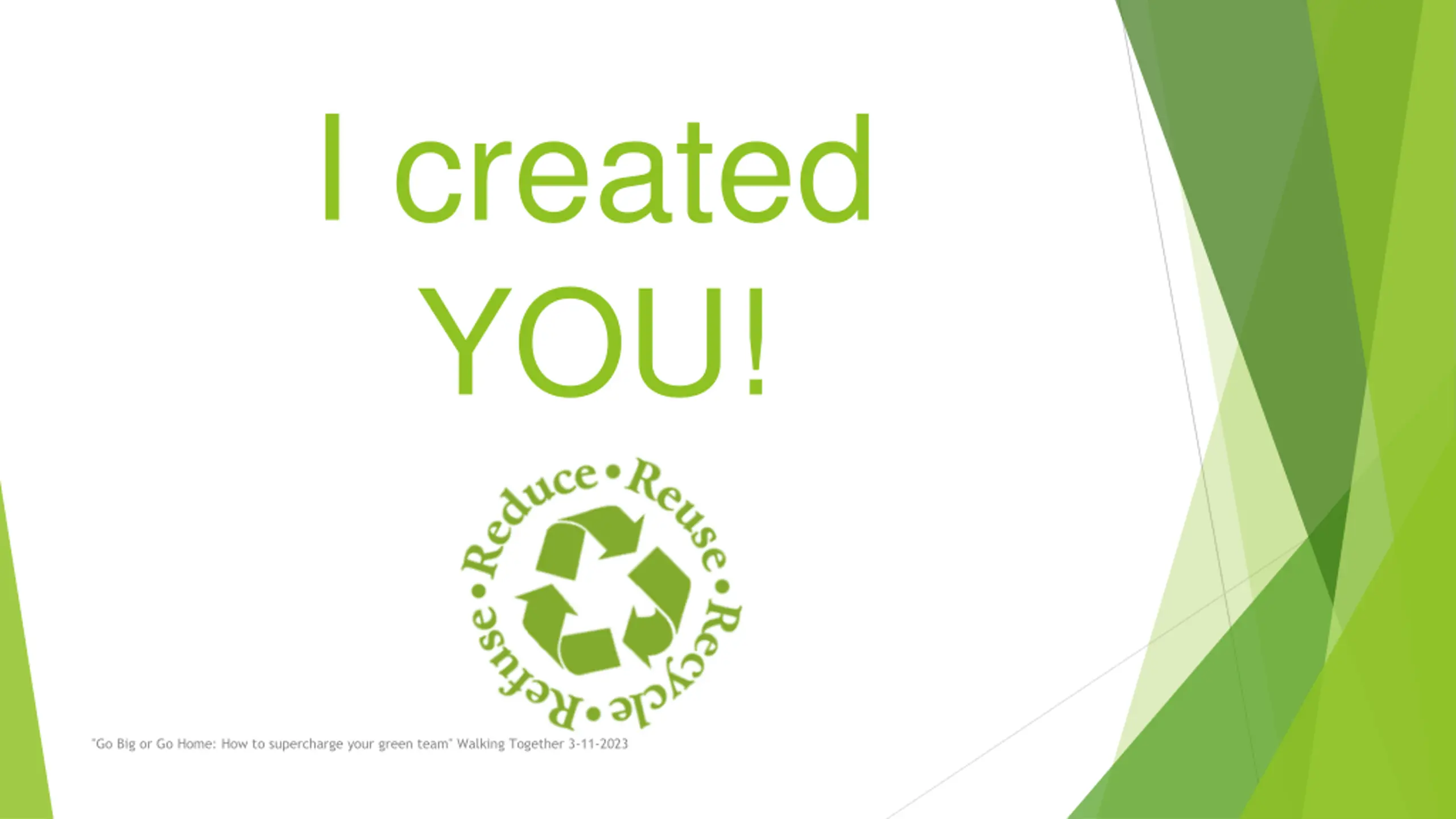 I created YOU! "Go Big or Go Home: How to supercharge your green team" Walking Together 3-11-2023