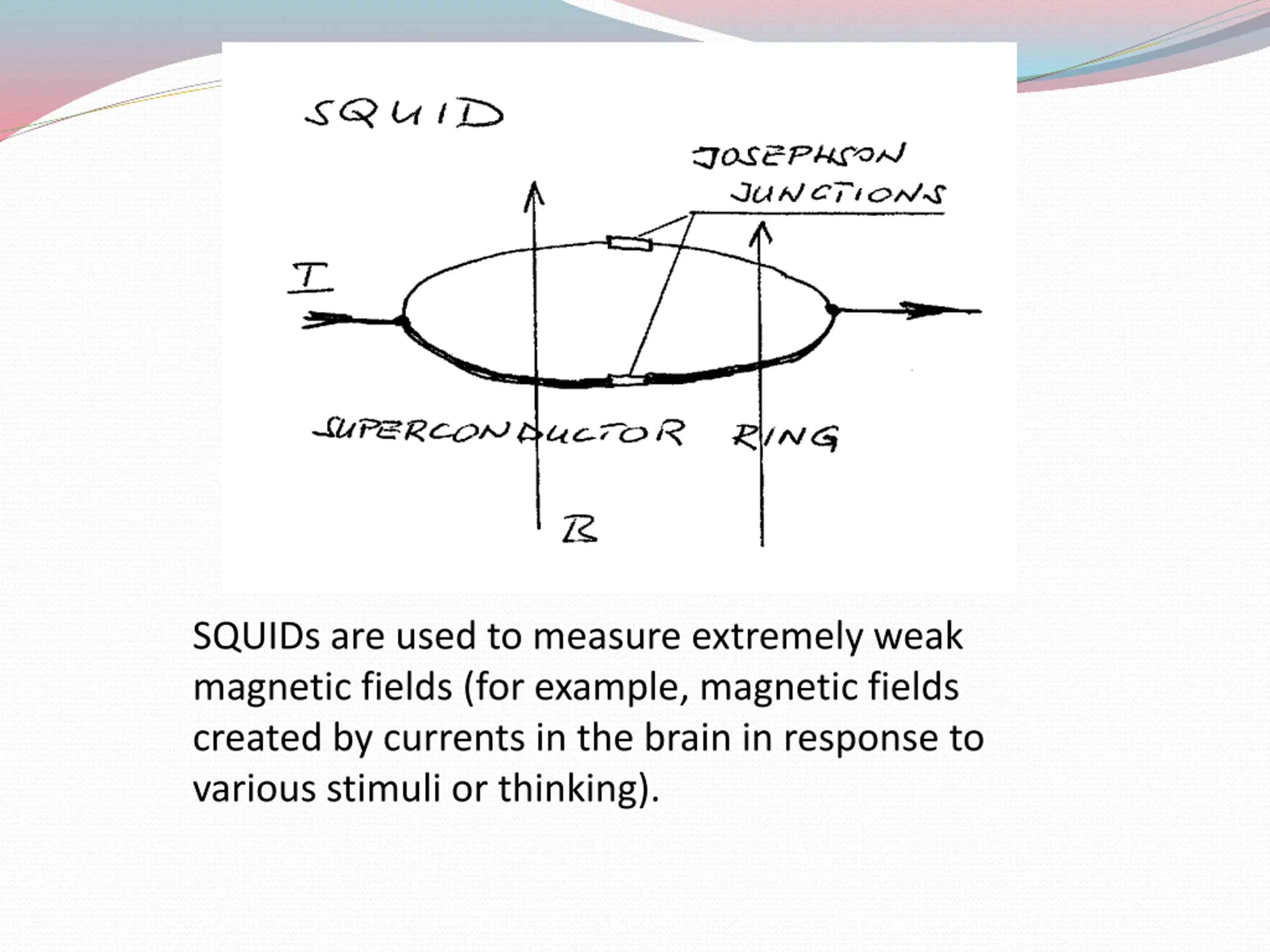 SQUIDs are used to measure extremely weak magnetic fields (for example, magnetic fields created by currents in the brain in response to various stimuli or thinking).