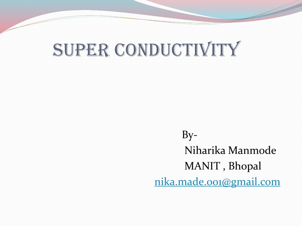 Super Conductivity By- Niharika Manmode MANIT , Bhopal nika.made.001@gmail.com