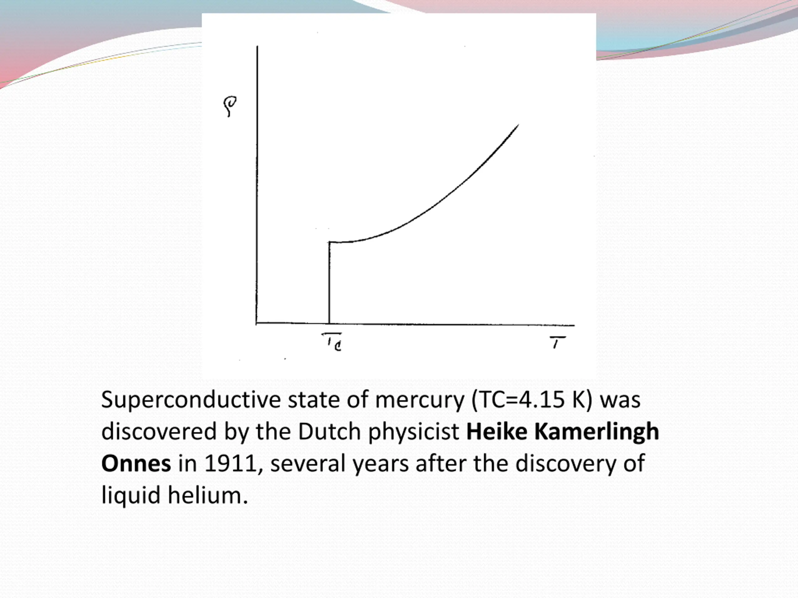 Superconductive state of mercury (TC=4.15 K) was discovered by the Dutch physicist Heike Kamerlingh Onnes in 1911, several years after the discovery of liquid helium.
