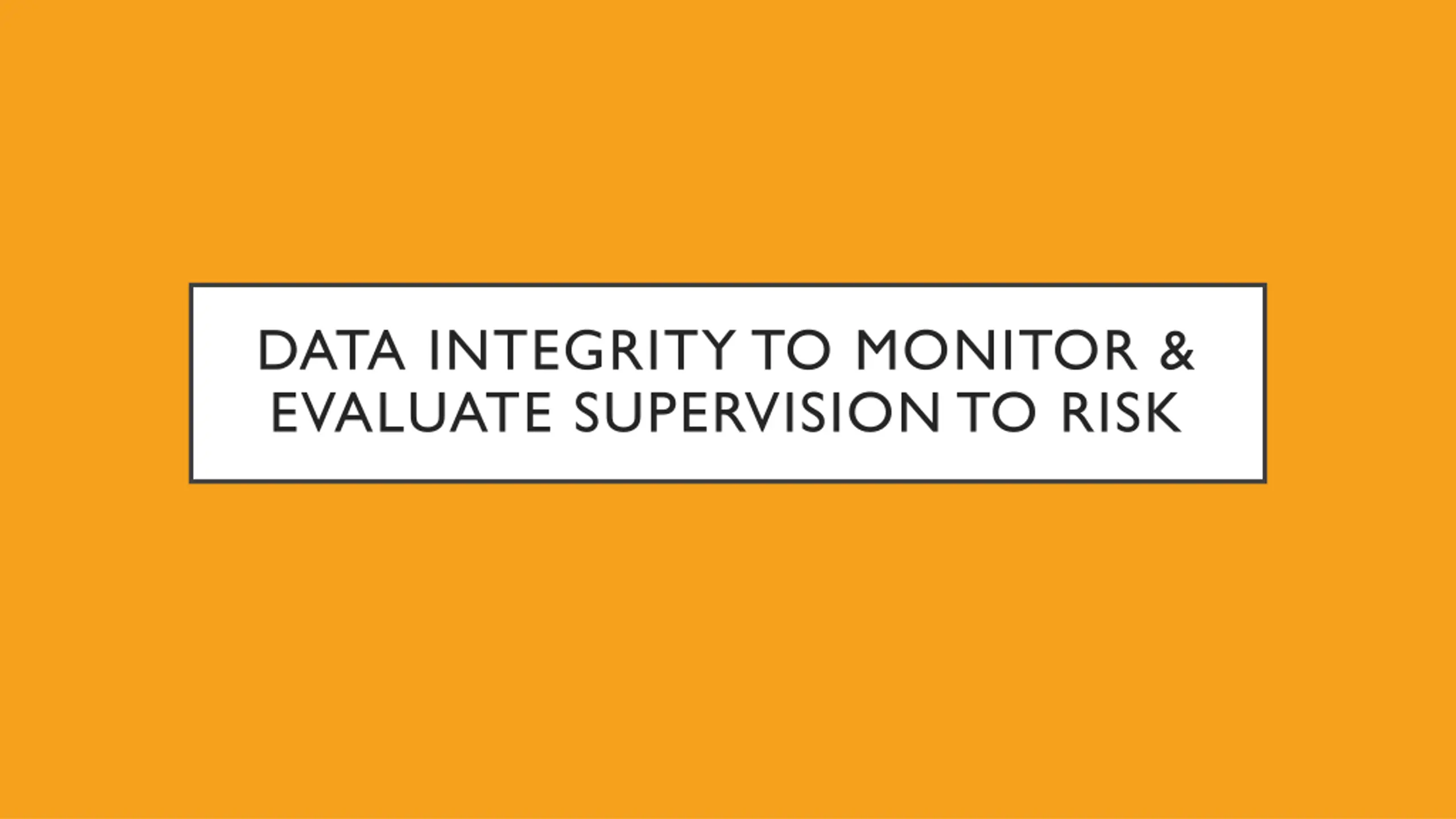 DATA INTEGRITY TO MONITOR & EVALUATE SUPERVISION TO RISK
