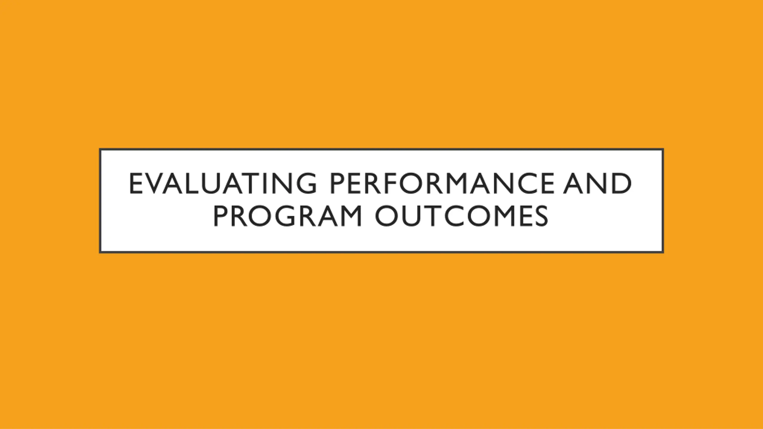 EVALUATING PERFORMANCE AND PROGRAM OUTCOMES
