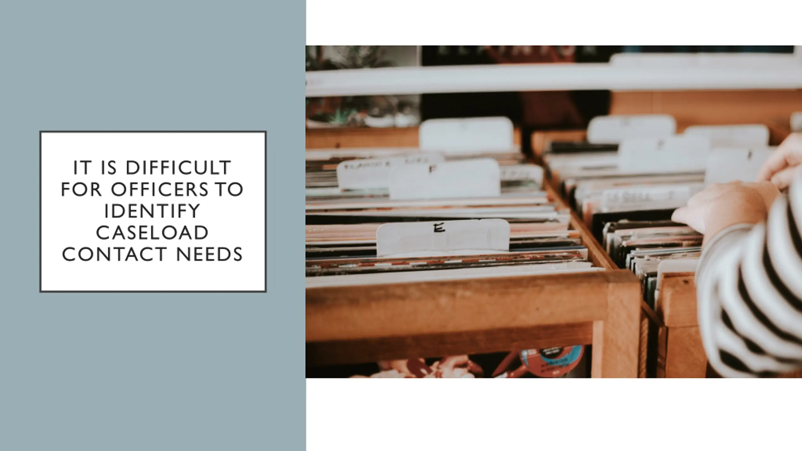 IT IS DIFFICULT FOR OFFICERS TO IDENTIFY CASELOAD CONTACT NEEDS