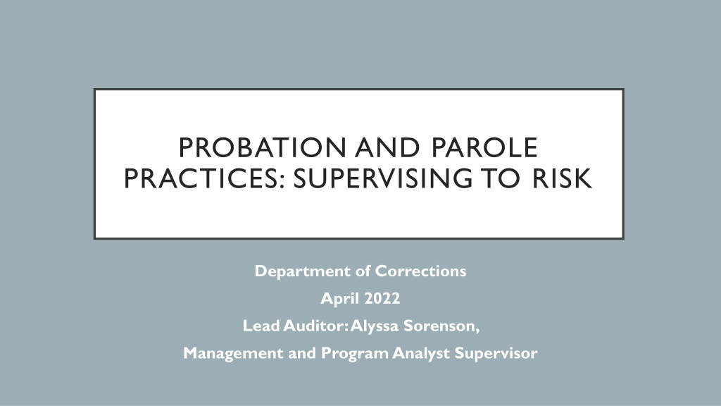 PROBATION AND PAROLE PRACTICES: SUPERVISING TO RISK Department of Corrections April 2022 Lead Auditor: Alyssa Sorenson, Management and Program Analyst Supervisor