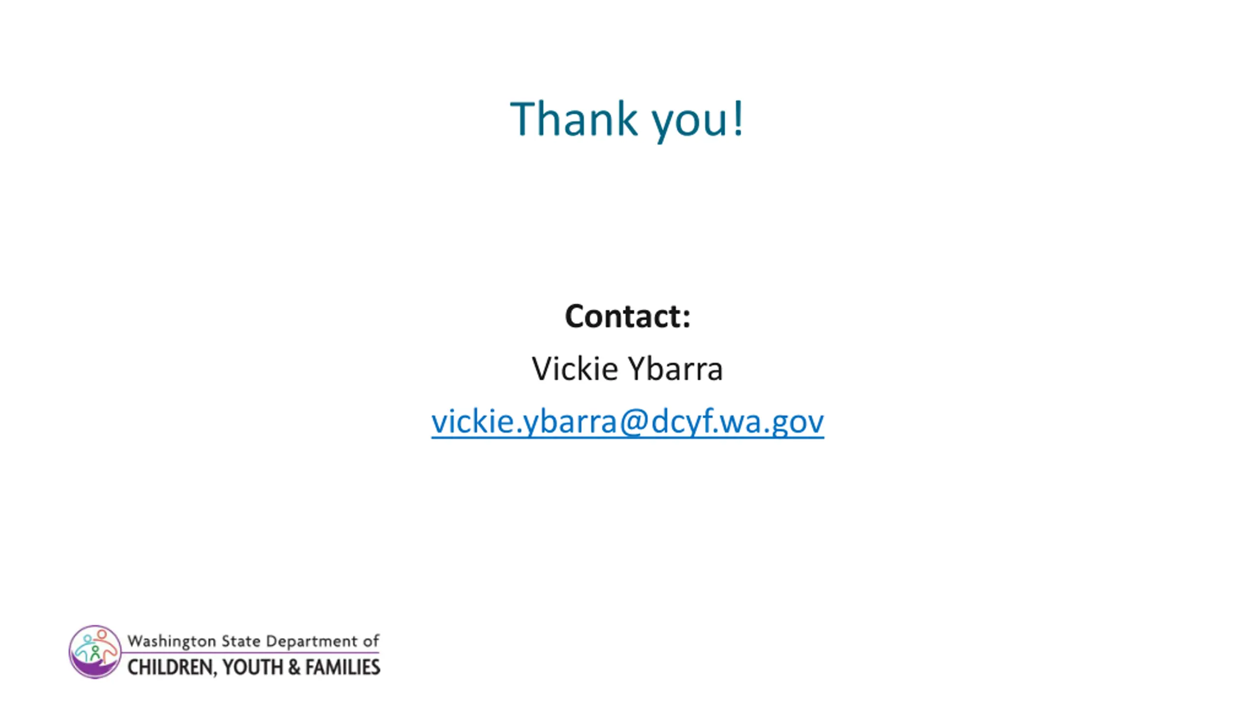 Thank you! Contact: Vickie Ybarra vickie.ybarra@dcyf.wa.gov 10