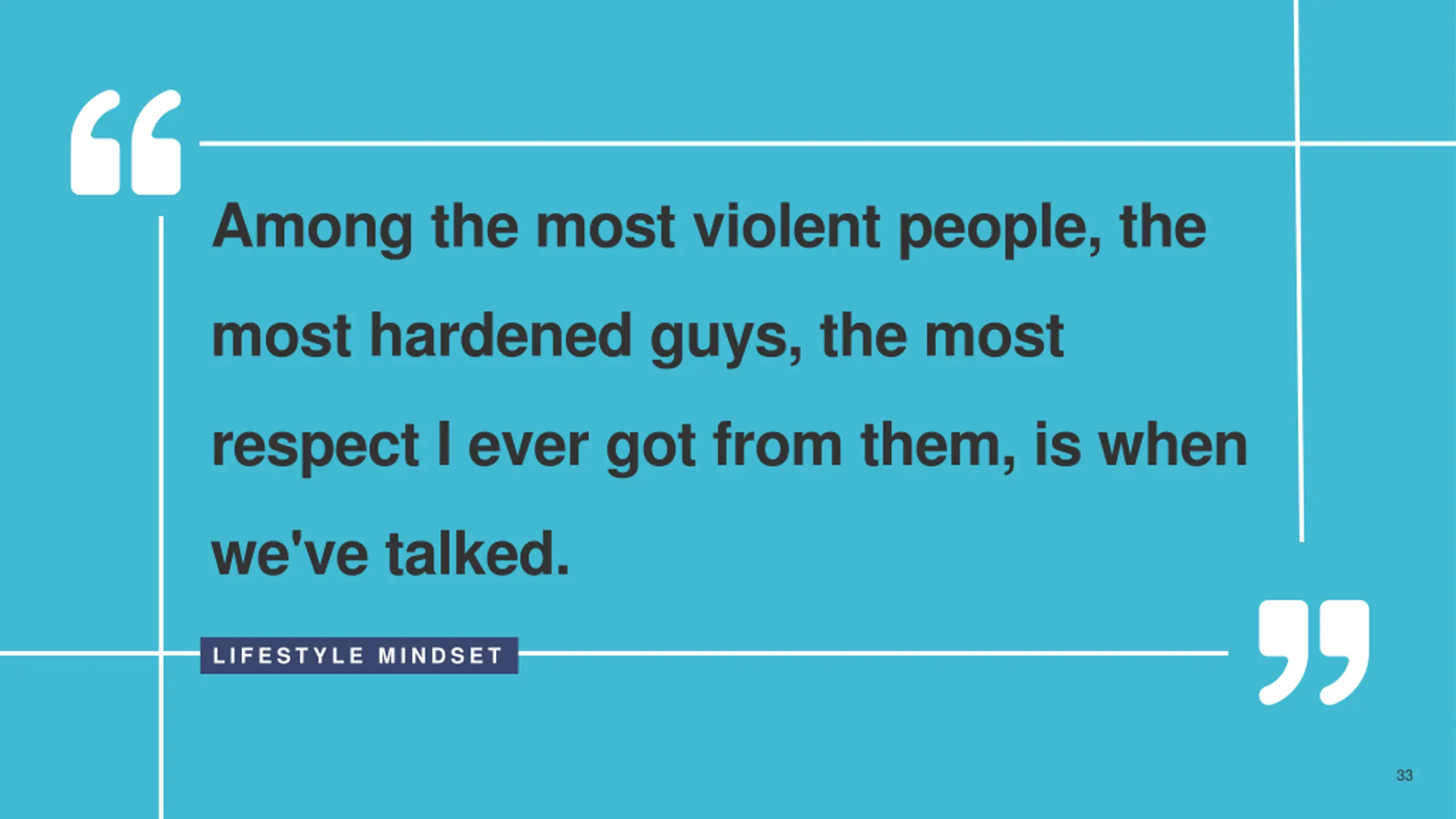 - IN-CONFIDENCE Among the most violent people, the most hardened guys, the most respect I ever got from them, is when we've talked. L I F E S T Y L E M I N D S E T 33 33
