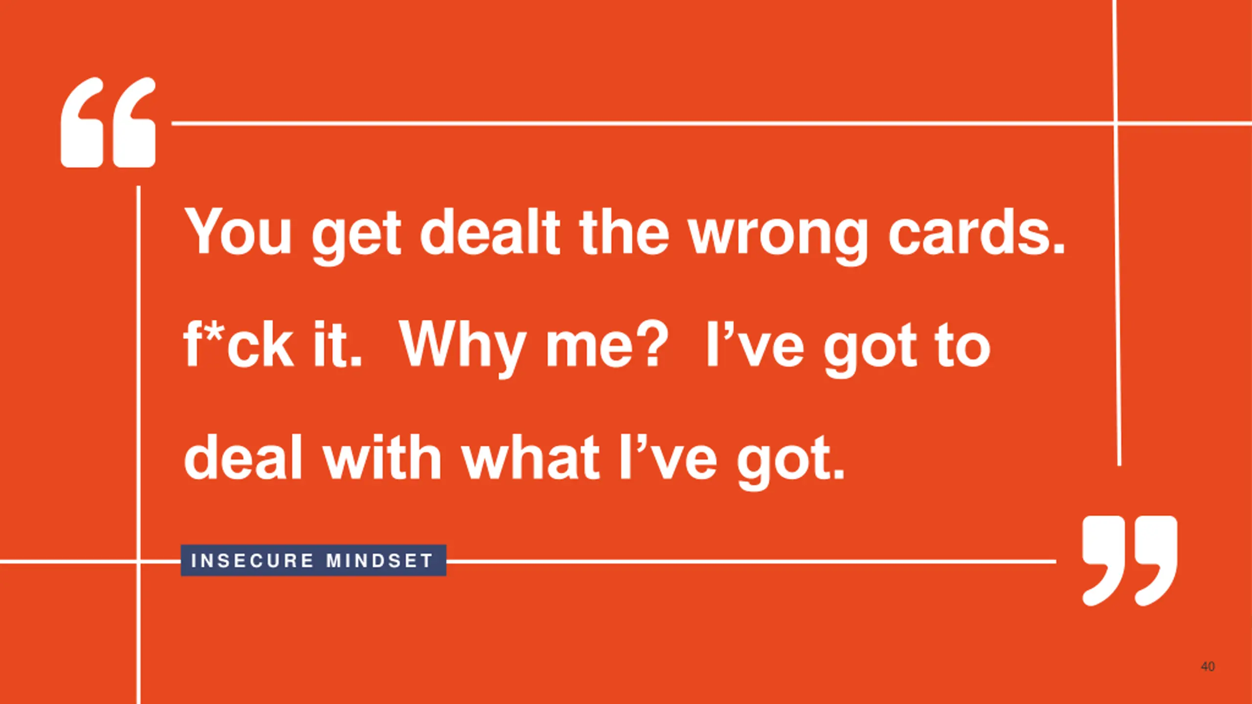- IN-CONFIDENCE You get dealt the wrong cards. f*ck it. Why me? I ve got to deal with what I ve got. I N S E C U R E M I N D S E T 40 40
