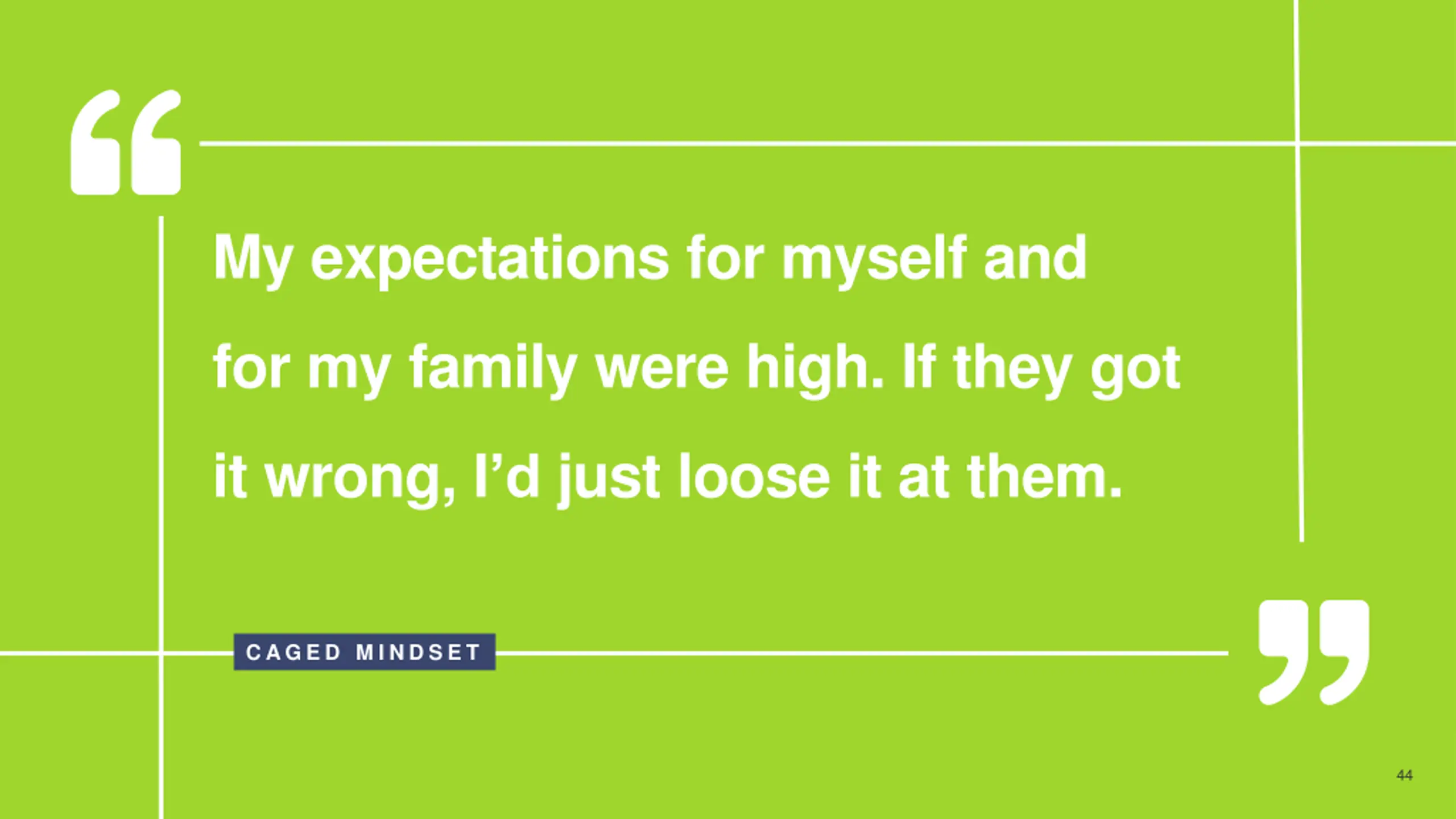 - IN-CONFIDENCE My expectations for myself and for my family were high. If they got it wrong, I d just loose it at them. C AG E D M I N D S E T 44 44