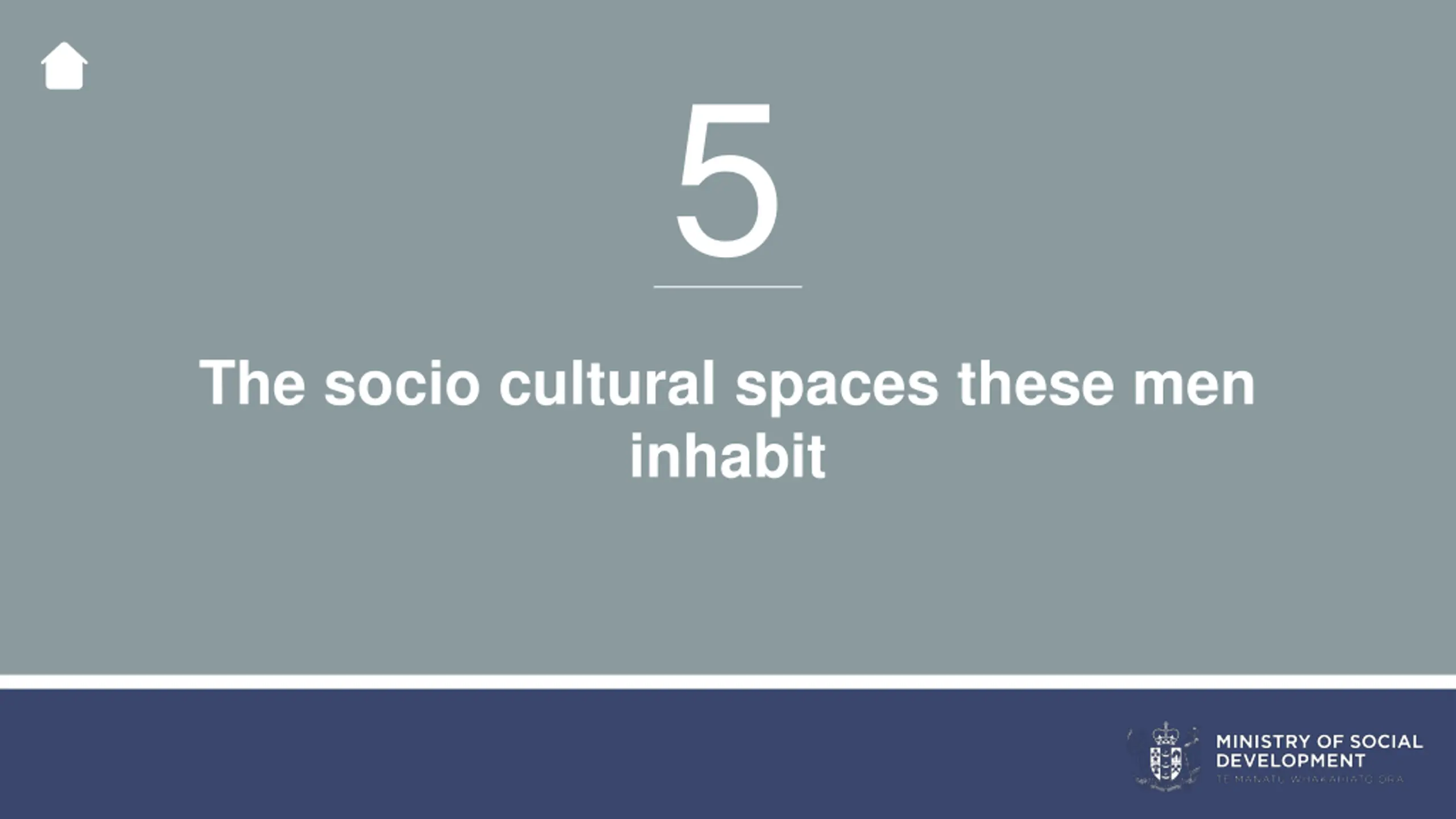 - IN-CONFIDENCE 1. Research purpose and objectives 2. Methodology 3. Summary of key findings 4. The need for new approaches Contents 5. The socio cultural spaces these men inhabit 6. Stories and mindsets 7. Barriers to change what sustains their behaviour 8. Conditions for change 9. Solutions: Content and formats 2