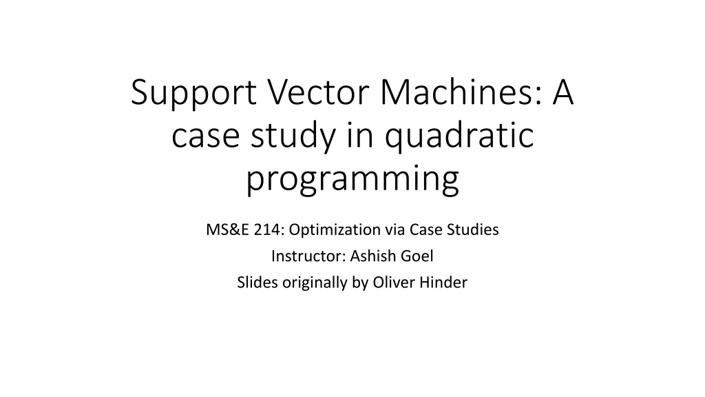 Support Vector Machines: A case study in quadratic programming MS&E 214: Optimization via Case Studies Instructor: Ashish Goel Slides originally by Oliver Hinder