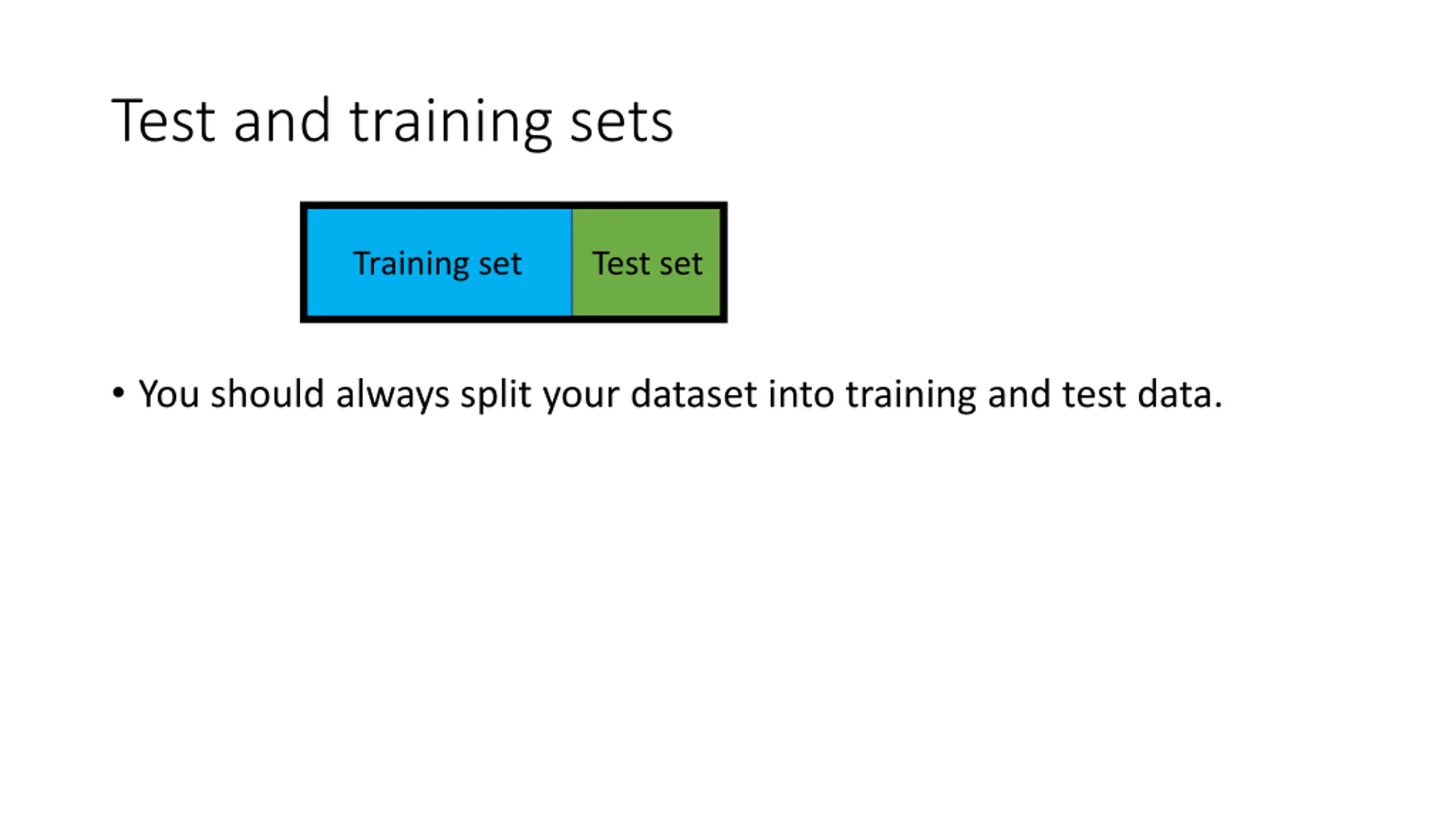 Test and training sets Training set Test set You should always split your dataset into training and test data.