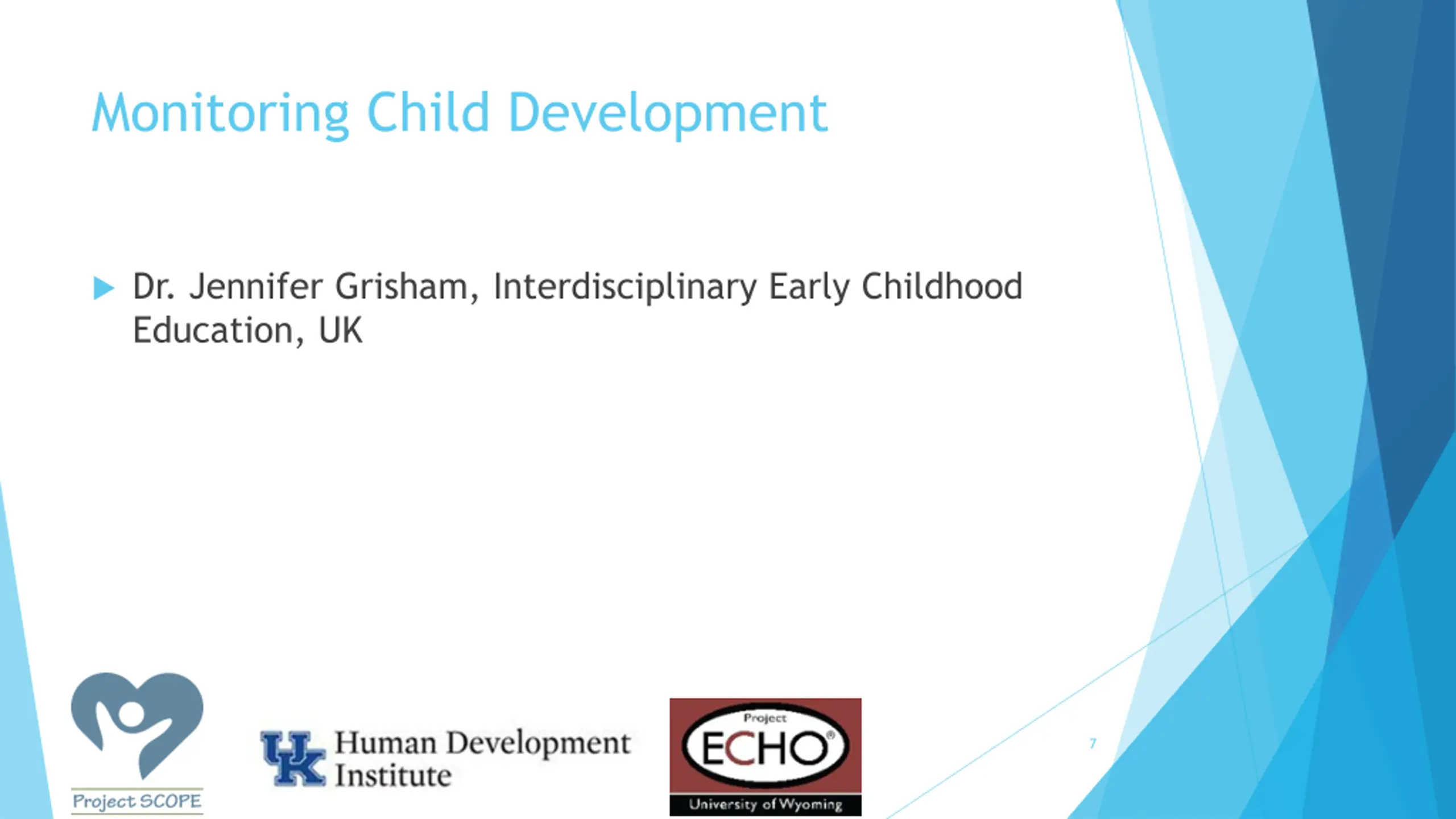 Monitoring Child Development Dr. Jennifer Grisham, Interdisciplinary Early Childhood Education, UK 7