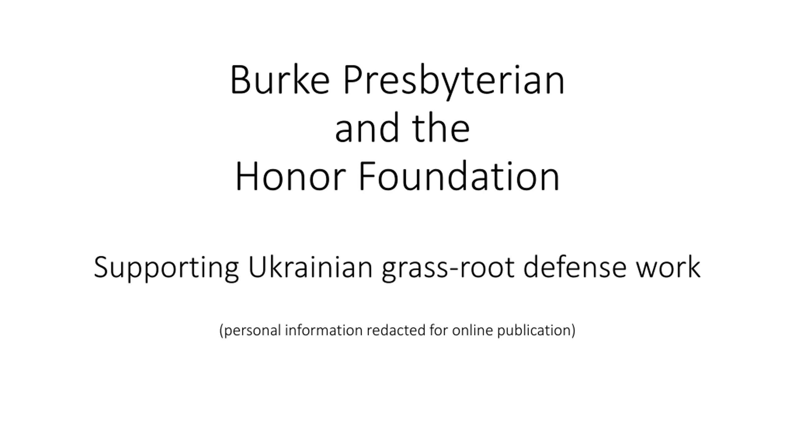 Burke Presbyterian and the Honor Foundation Supporting Ukrainian grass-root defense work (personal information redacted for online publication)