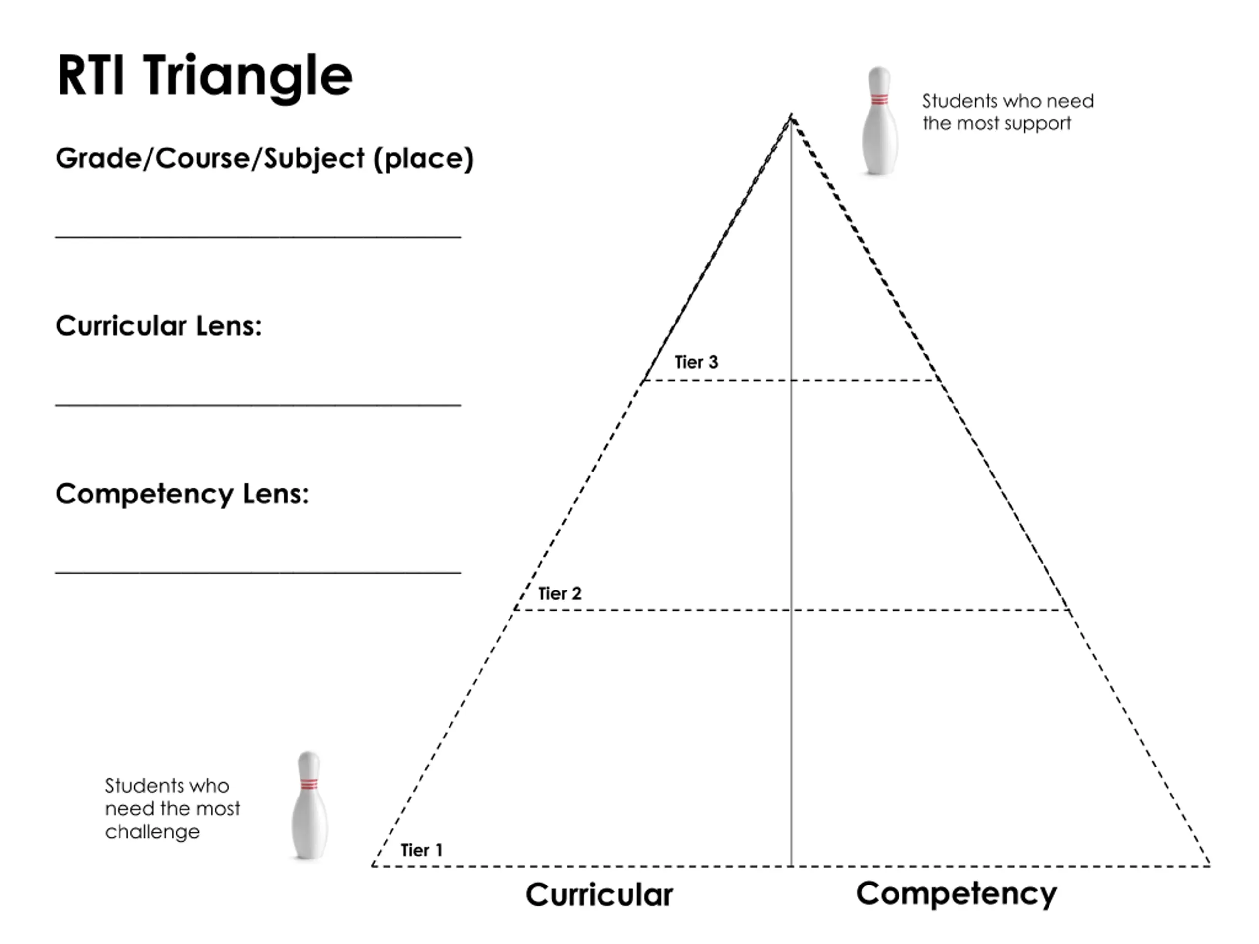 RTI Triangle Students who need the most support Grade/Course/Subject (place) _____________________________ Curricular Lens: Tier 3 _____________________________ Competency Lens: _____________________________ Tier 2 Students who need the most challenge Tier 1 Competency Curricular