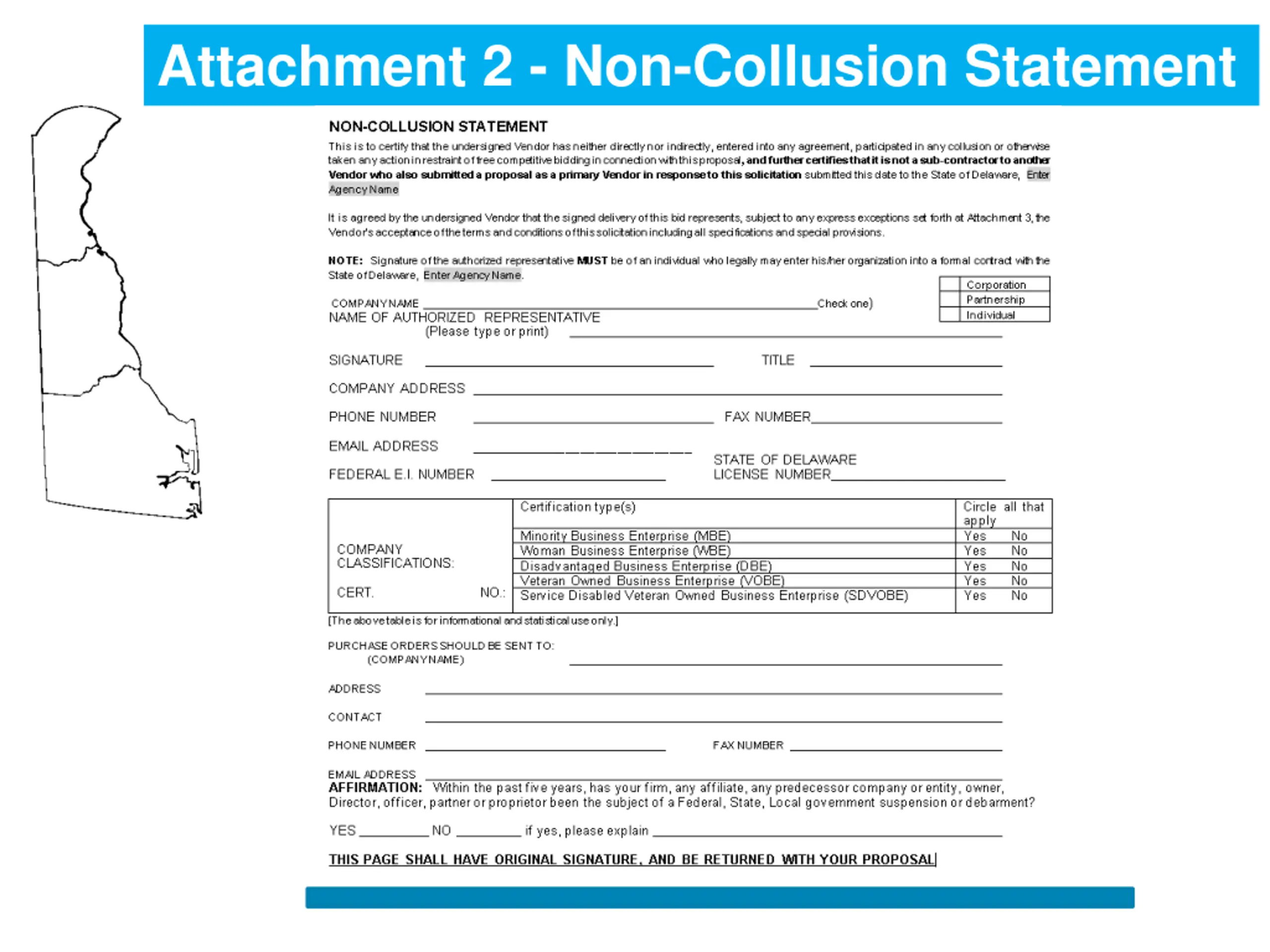 RESPONSE TO RFP Transmittal Letter Attachment 2 Non-Collusion Statement