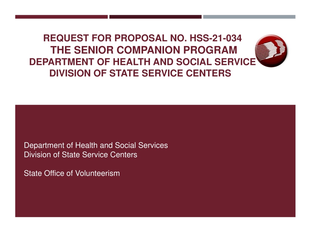 REQUEST FOR PROPOSAL NO. HSS-21-034 THE SENIOR COMPANION PROGRAM DEPARTMENT OF HEALTH AND SOCIAL SERVICE DIVISION OF STATE SERVICE CENTERS Department of Health and Social Services Division of State Service Centers State Office of Volunteerism