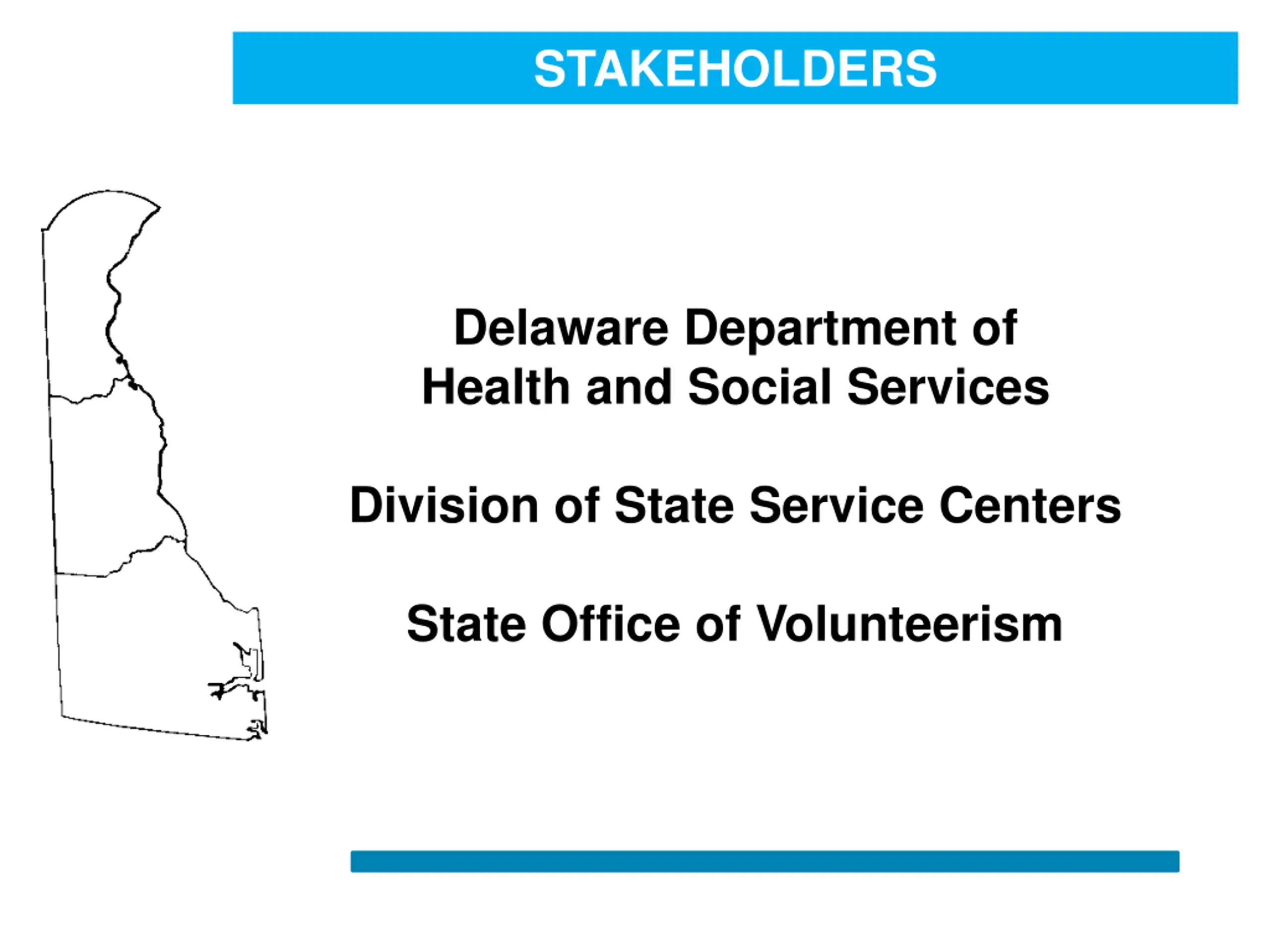STAKEHOLDERS Delaware Department of Health and Social Services Division of State Service Centers State Office of Volunteerism