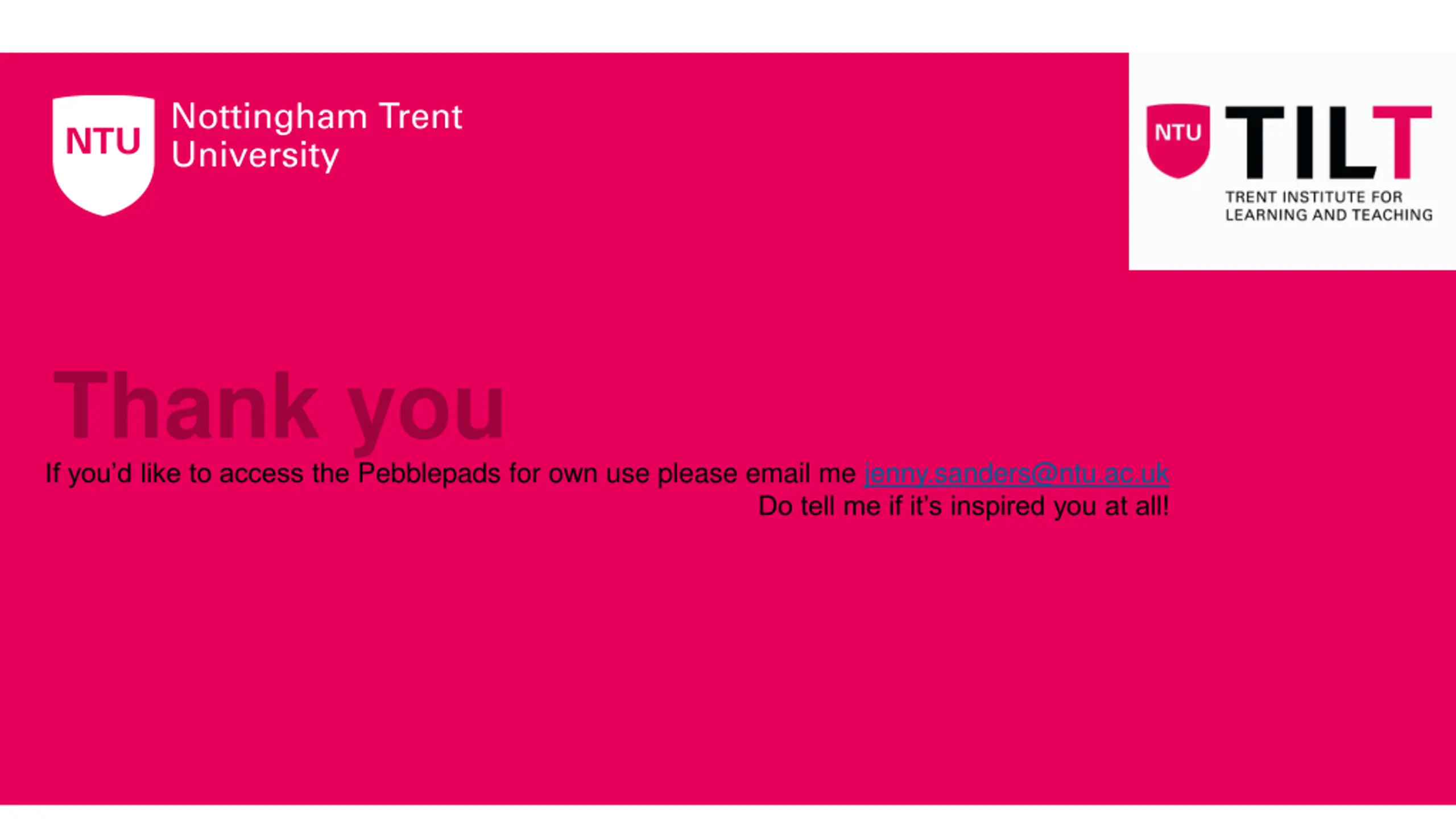 Thank you If you d like to access the Pebblepads for own use please email me jenny.sanders@ntu.ac.uk Do tell me if it s inspired you at all!