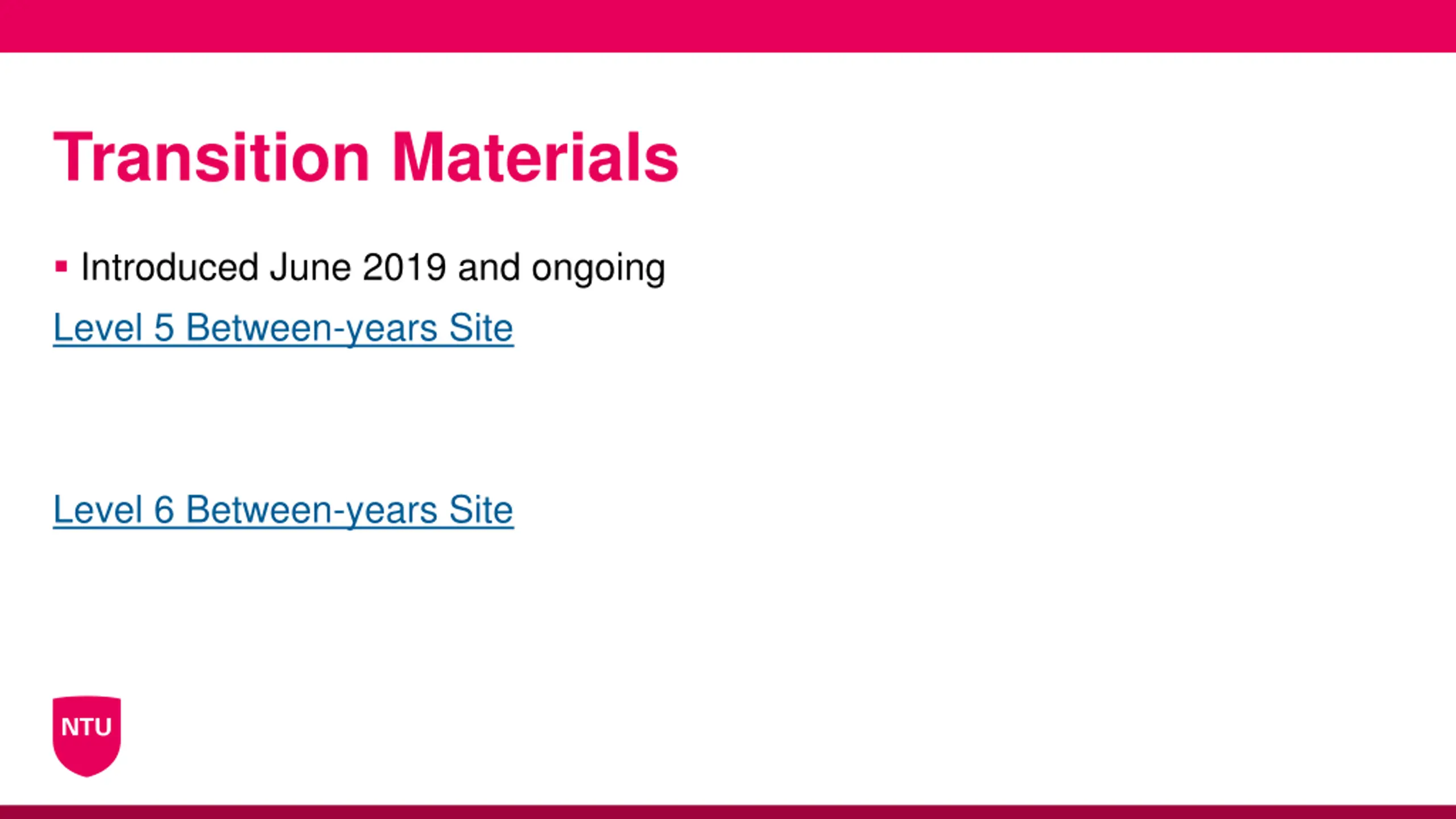 Transition Materials Introduced June 2019 and ongoing Level 5 Between-years Site Level 6 Between-years Site