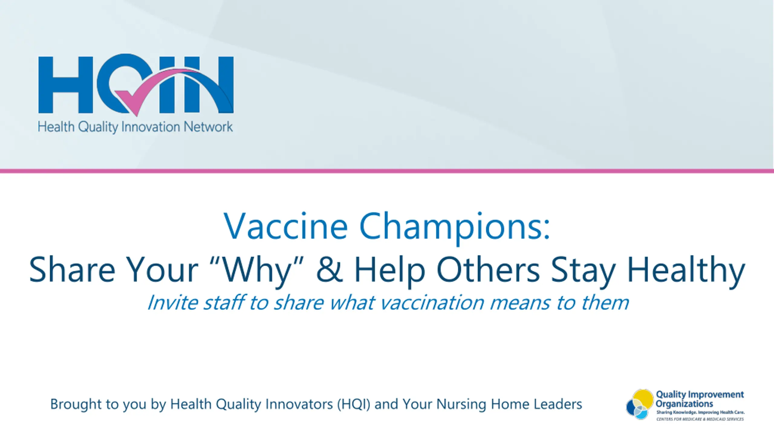 Vaccine Champions: Share Your Why & Help Others Stay Healthy Invite staff to share what vaccination means to them Brought to you by Health Quality Innovators (HQI) and Your Nursing Home Leaders