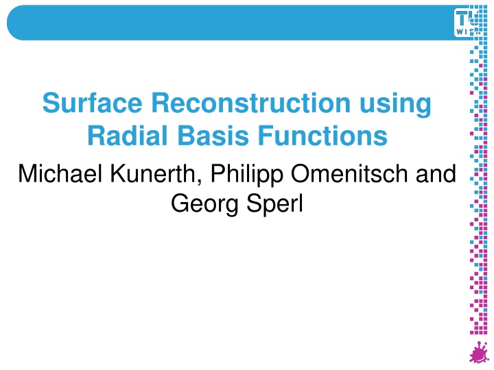 Surface Reconstruction using Radial Basis Functions Michael Kunerth, Philipp Omenitsch and Georg Sperl 1Institute of Computer Graphics and Algorithms 2 <insert 2nd affiliation (institute) here> <insert 2nd affiliation (university) here> Vienna University of Technology 3 <insert 3rd affiliation (institute) here> <insert 3rd affiliation (university) here>