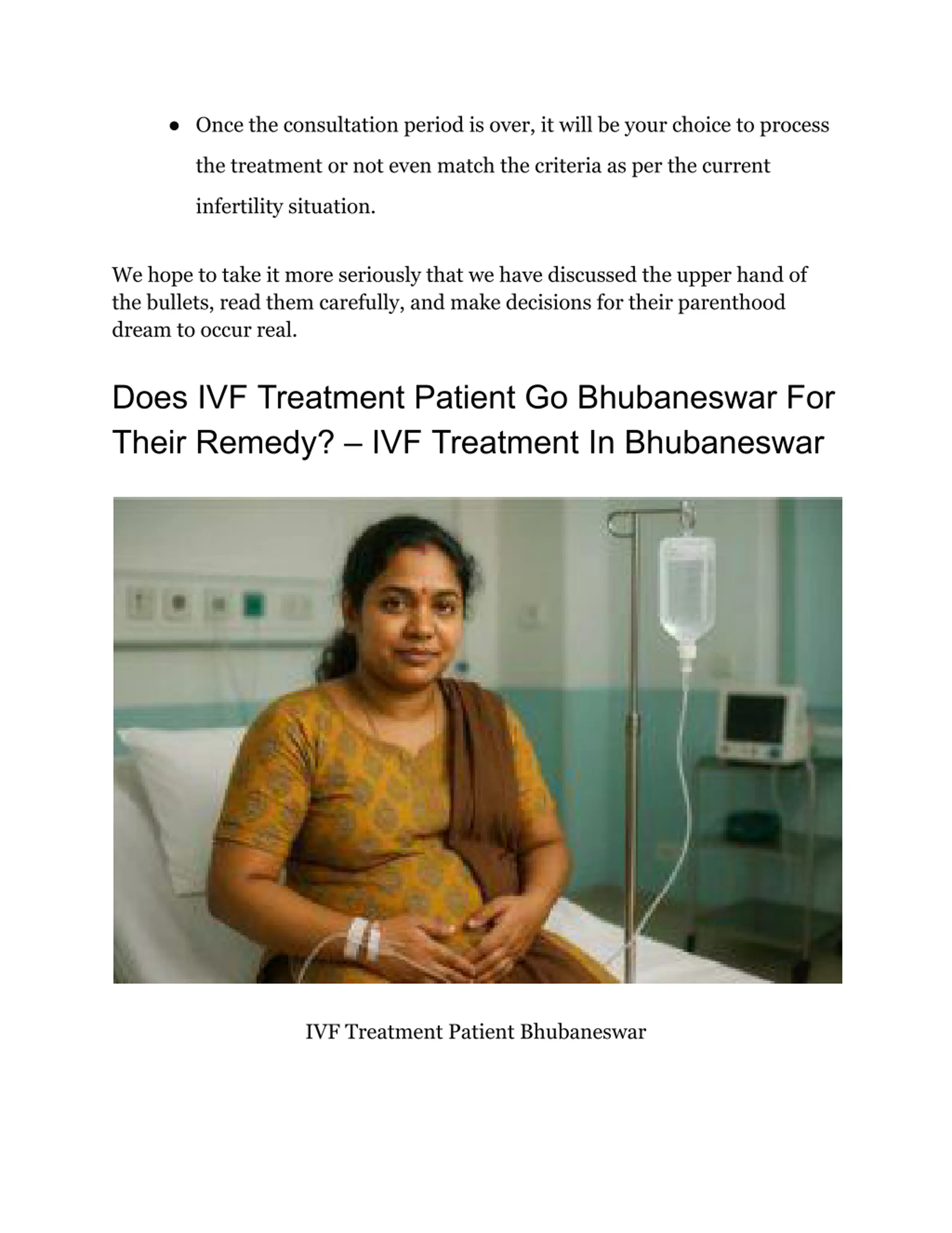 Once the consultation period is over, it will be your choice to process the treatment or not even match the criteria as per the current infertility situation. We hope to take it more seriously that we have discussed the upper hand of the bullets, read them carefully, and make decisions for their parenthood dream to occur real. Does IVF Treatment Patient Go Bhubaneswar For Their Remedy? IVF Treatment In Bhubaneswar IVF Treatment Patient Bhubaneswar
