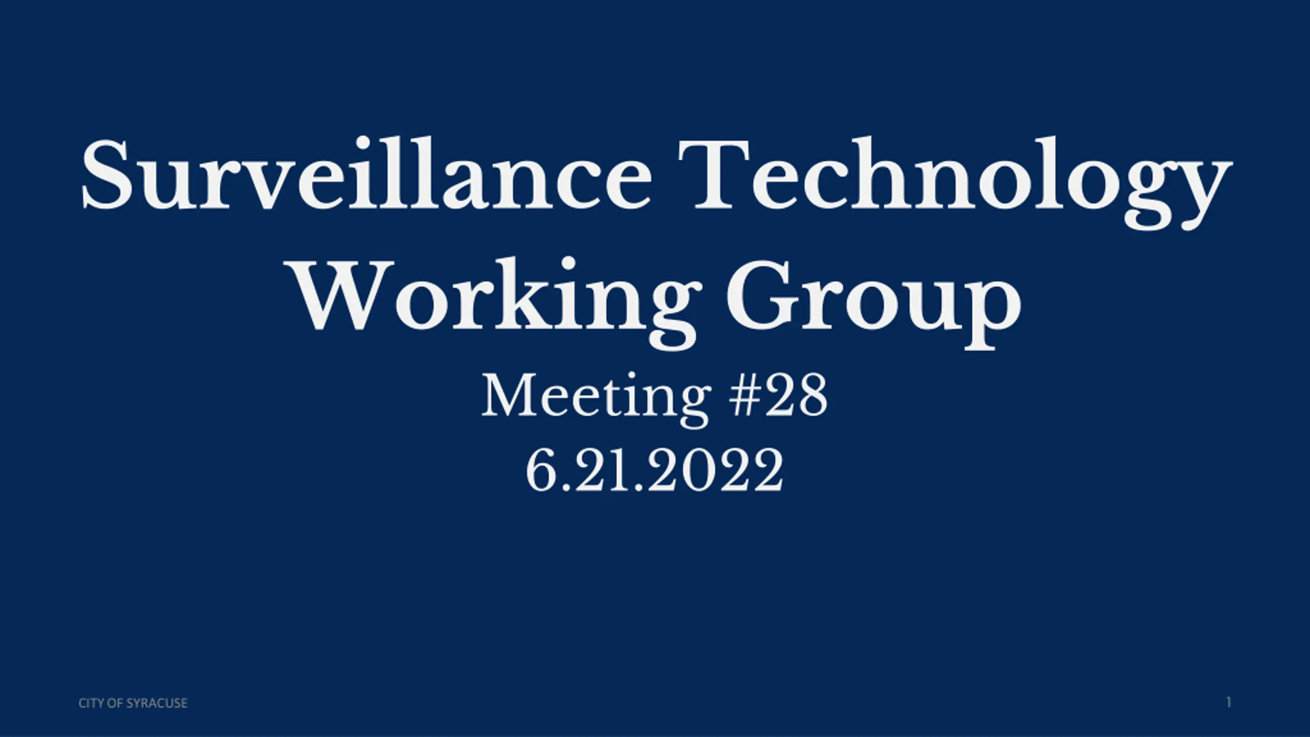 Surveillance Technology Policy and Data Governance 2022 Surveillance Technology Working Group Meeting #28 6.21.2022 1 CITY OF SYRACUSE