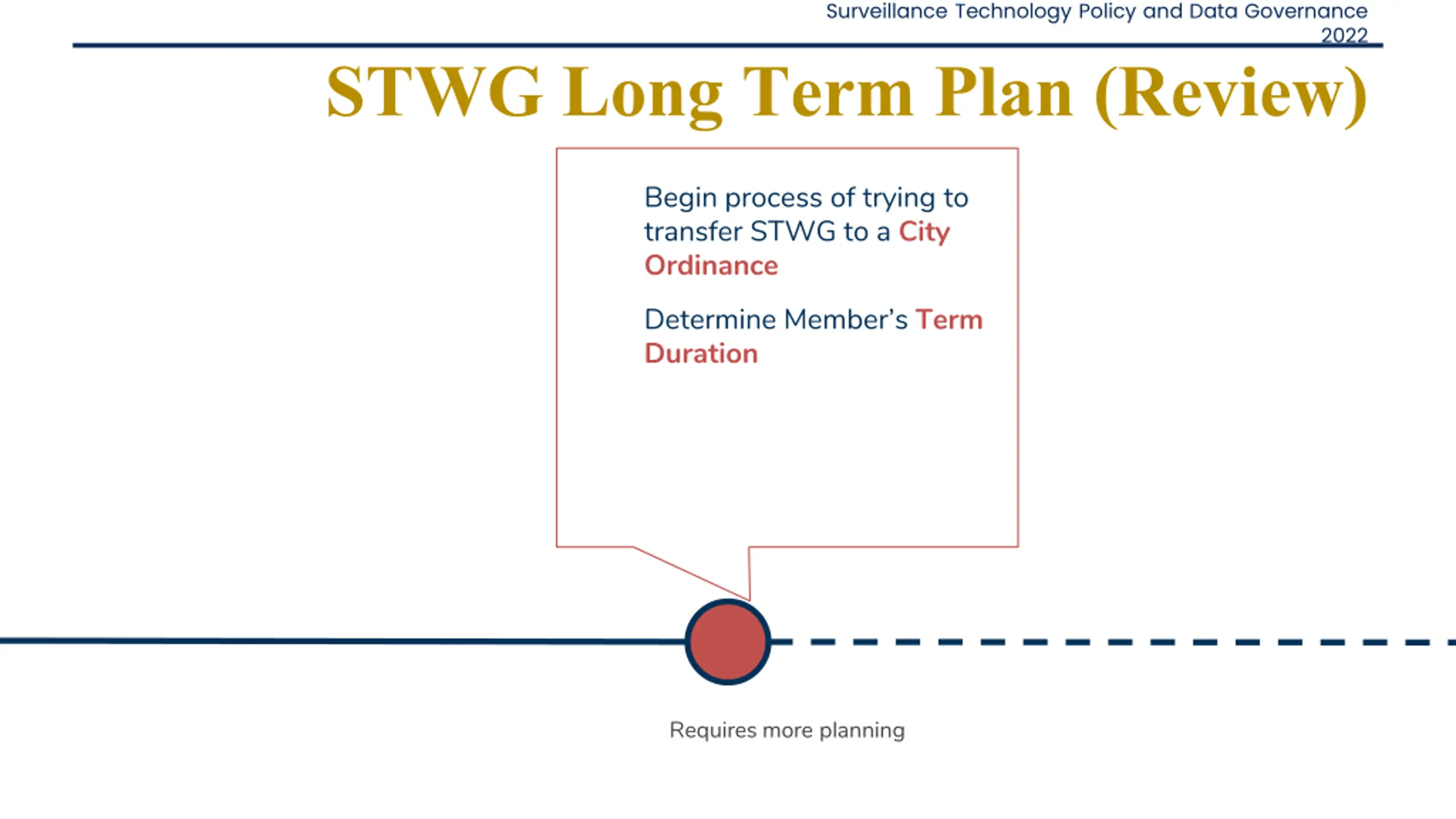 Surveillance Technology Policy and Data Governance 2022 STWG Long Term Plan (Review) Requires more planning