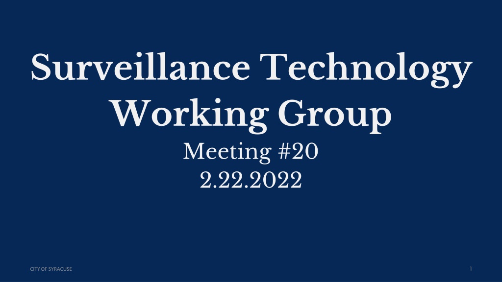 Surveillance Technology Policy and Data Governance 2022 Surveillance Technology Working Group Meeting #20 2.22.2022 1 CITY OF SYRACUSE