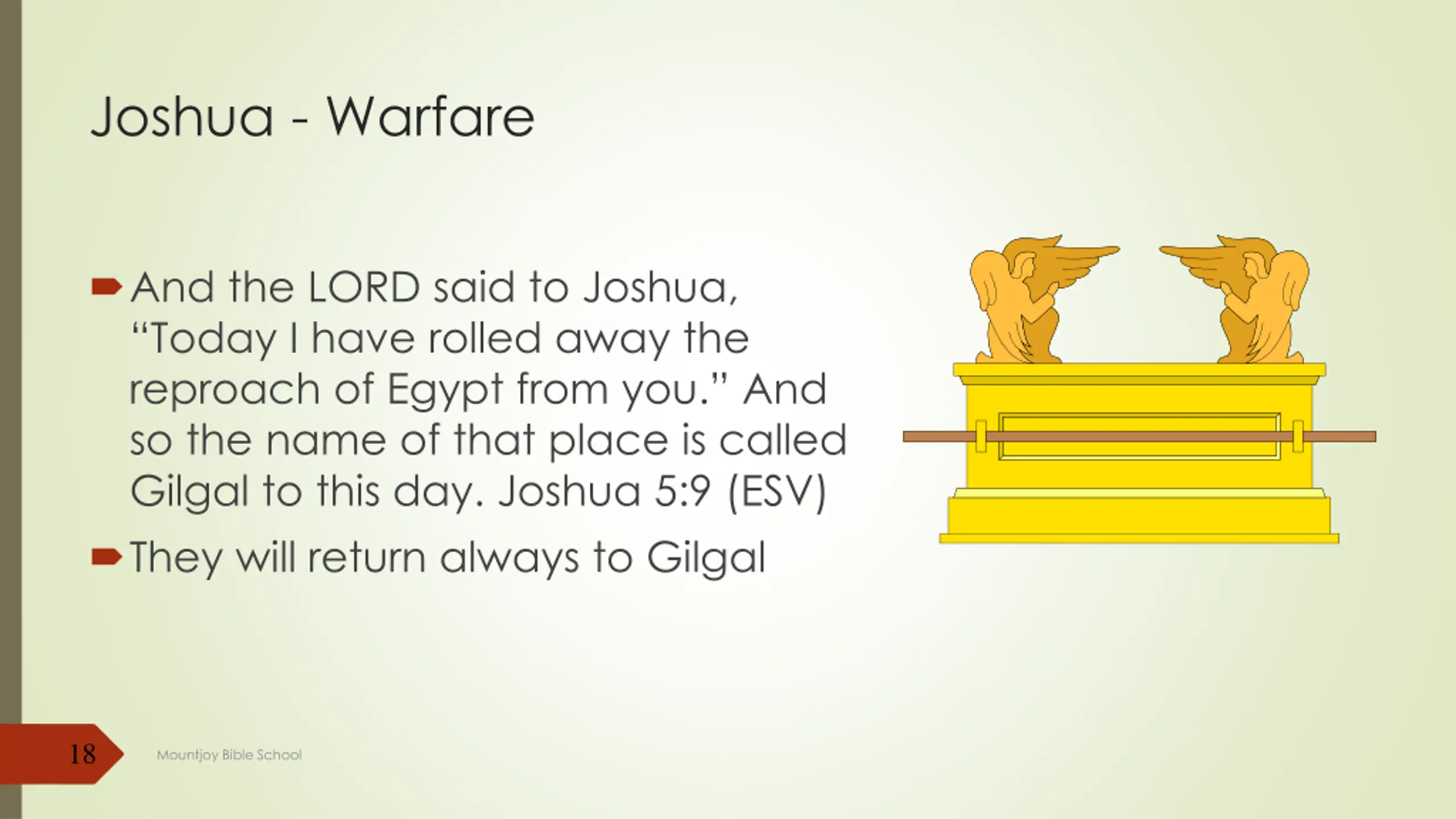 Joshua - Warfare And the LORD said to Joshua, Today I have rolled away the reproach of Egypt from you. And so the name of that place is called Gilgal to this day. Joshua 5:9 (ESV) They will return always to Gilgal 18 Mountjoy Bible School