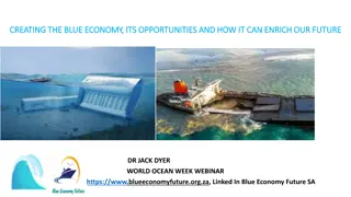 AUSTRALIA By 2025, Australia s marine industries will contribute around $100 billion each year to our economy, with our oceans and coasts providing a further $25 billion worth of ecosystem services, such as carbon dioxide absorption, nutrient cycling and coastal protection. This marine economy is projected to grow three times faster than Australia s gross domestic product over the next decade,more than doubling its 2012 contribution of $47.2 billion.* To achieve this, the marine science community, government and industry must undertake a coordinated, collaborative and dedicated national effort.We need to build and share critical marine data,undertake multidisciplinary research,and create the technology,tools and innovations that will drive economic development, environmental management and cultural stewardship of our marine estate for the next decade. InAustralia,the major ocean industries are: Fisheries and Seafood Refining of Petroleum from Offshore sources Shipbuilding Shipping MarineTourism* *National https://www.aims.gov.au/documents/30301/2094401/NMSP_FINAL_Aug2015.pdf/22bff822-097f-4d6b-8c68-c53f791cd892 Marine Science: Plan Driving the development of Australia s blue economy 2015 2025,p. 7, 38 Accessed on * Wang, (2016), The Blue Economy in China's Ocean Economy Statistics, Centre for Blue Economy, p. 10 Accessed on https://cbe.miis.edu/cgi/viewcontent.cgi?article=1055&context=joce