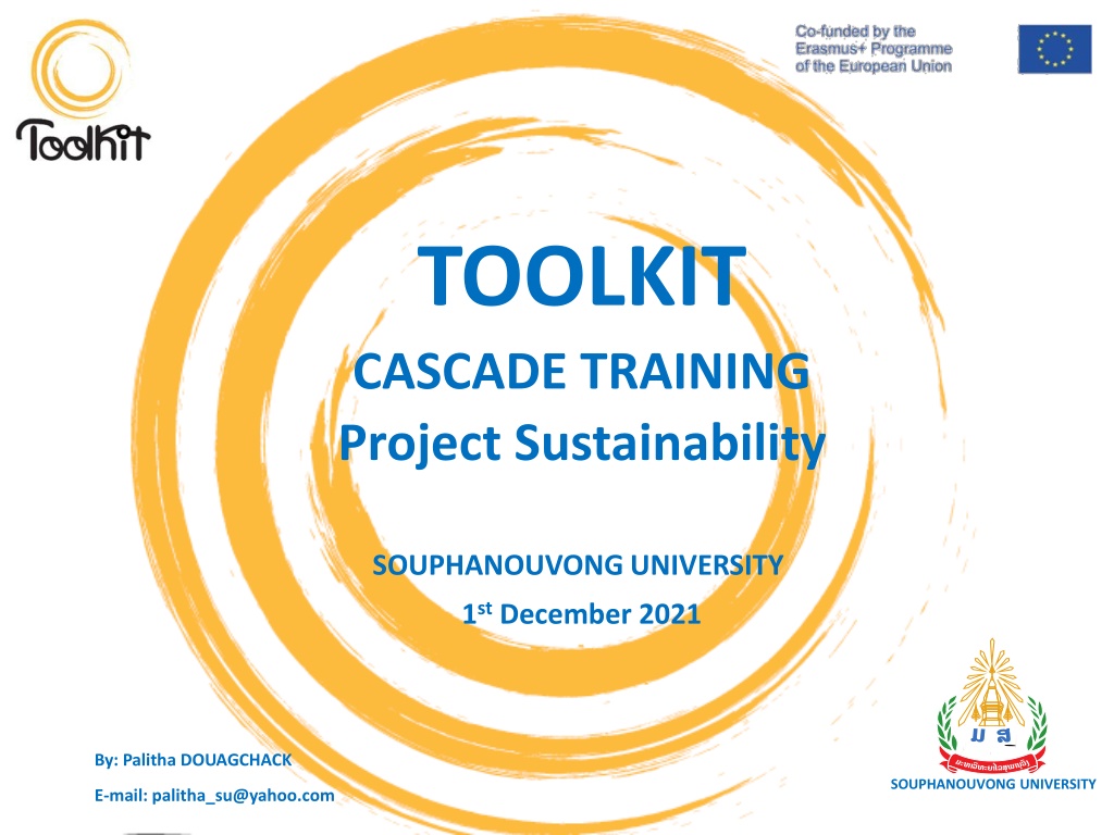 TOOLKIT CASCADE TRAINING Project Sustainability SOUPHANOUVONG UNIVERSITY 1stDecember 2021 By: Palitha DOUAGCHACK SOUPHANOUVONG UNIVERSITY E-mail: palitha_su@yahoo.com