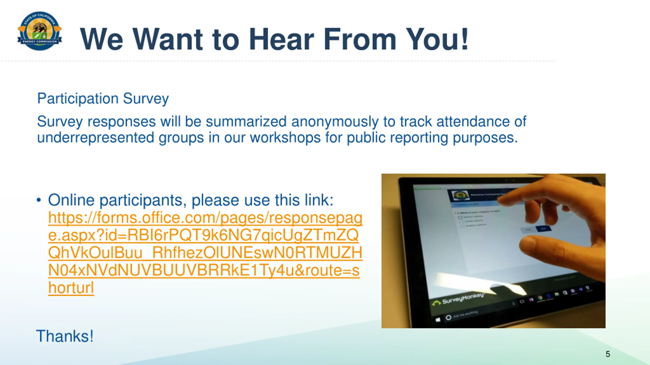 We Want to Hear From You! Participation Survey Survey responses will be summarized anonymously to track attendance of underrepresented groups in our workshops for public reporting purposes. Online participants, please use this link: https://forms.office.com/pages/responsepag e.aspx?id=RBI6rPQT9k6NG7qicUgZTmZQ QhVkOulBuu_RhfhezOlUNEswN0RTMUZH N04xNVdNUVBUUVBRRkE1Ty4u&route=s horturl Thanks! 5