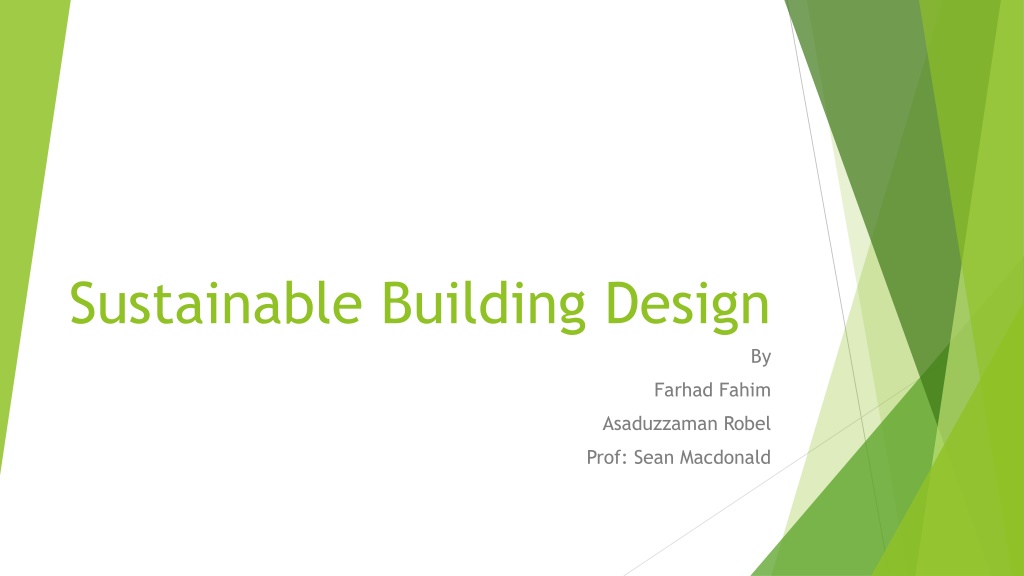Sustainable Building Design By Farhad Fahim Asaduzzaman Robel Prof: Sean Macdonald