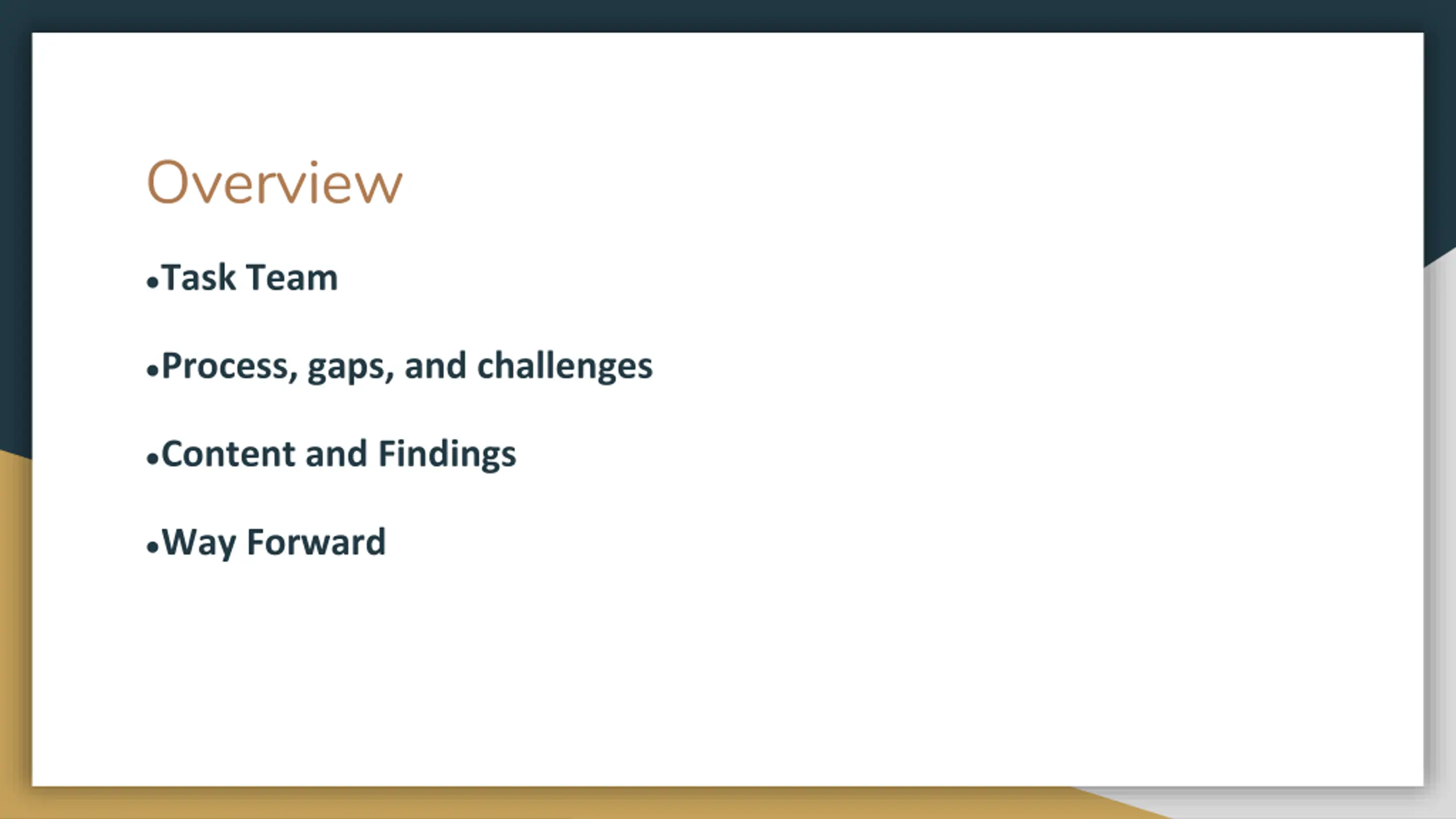 Overview Task Team Process, gaps, and challenges Content and Findings Way Forward