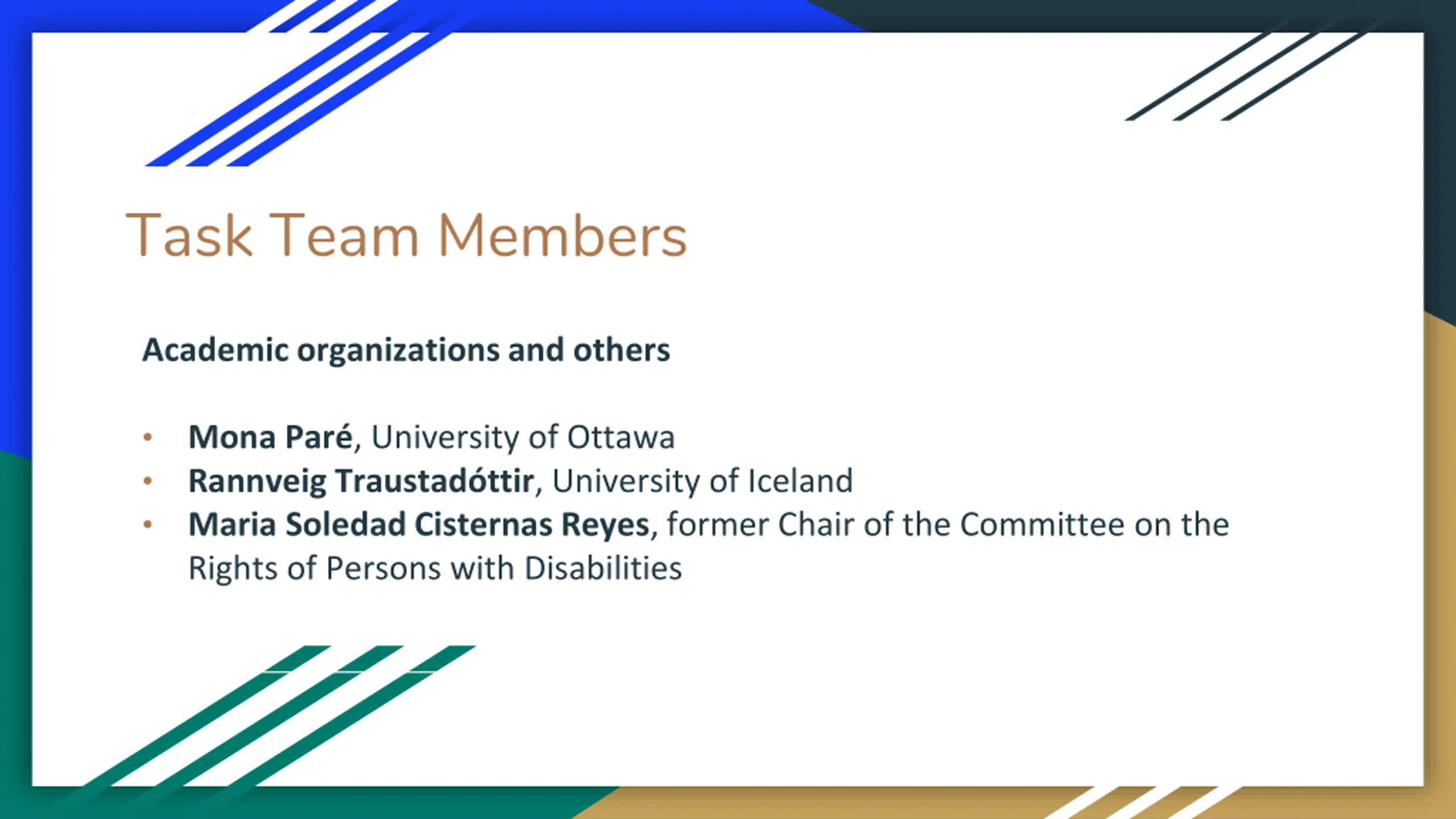 Task Team Members Academic organizations and others Mona Par , University of Ottawa Rannveig Traustad ttir, University of Iceland Maria Soledad Cisternas Reyes, former Chair of the Committee on the Rights of Persons with Disabilities
