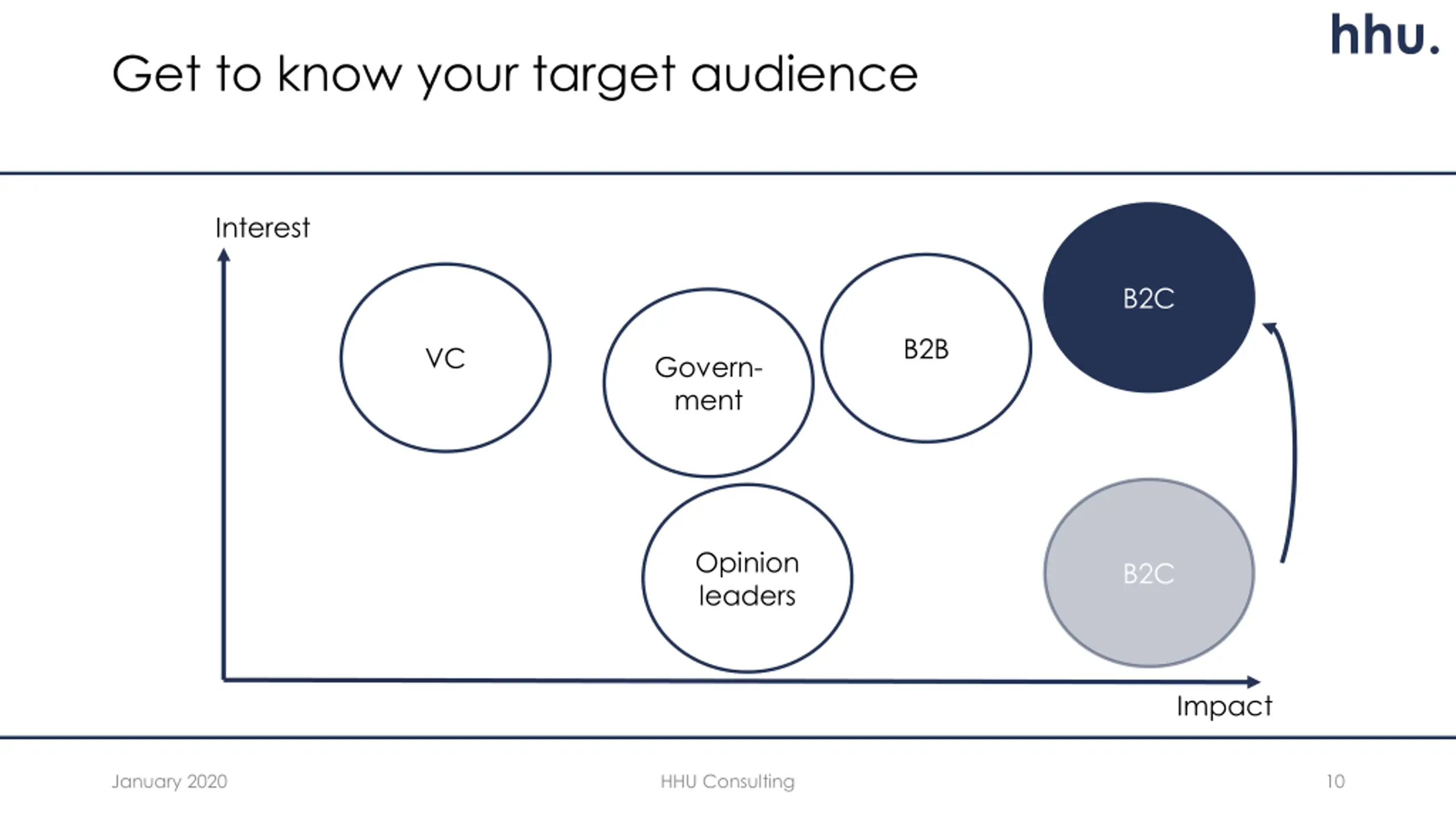 hhu. Get to know your target audience Interest B2C B2B VC Govern- ment Opinion leaders B2C Impact January 2020 HHU Consulting 10