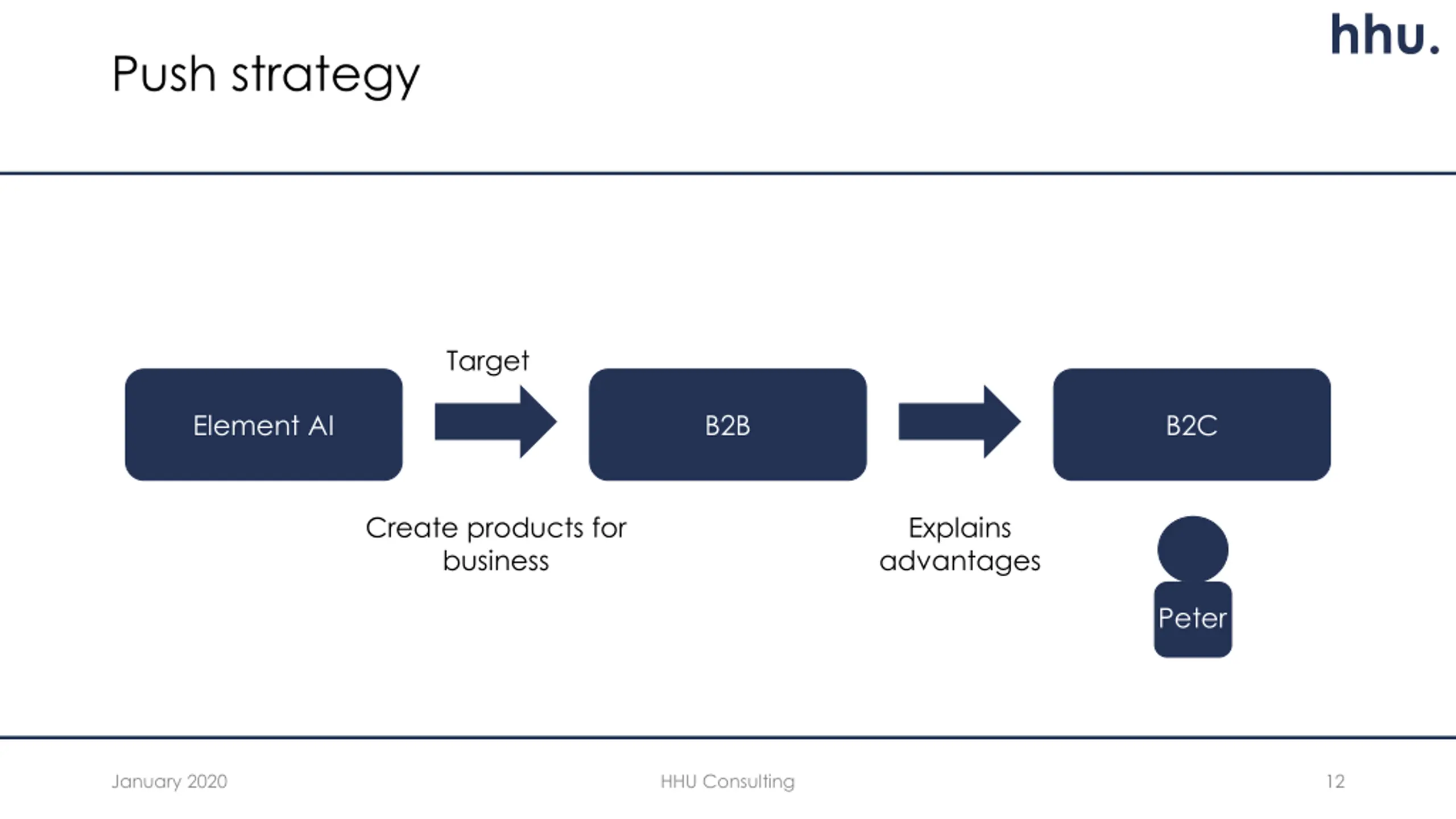 hhu. Push strategy Target Element AI B2B B2C Create products for business Explains advantages Peter January 2020 HHU Consulting 12