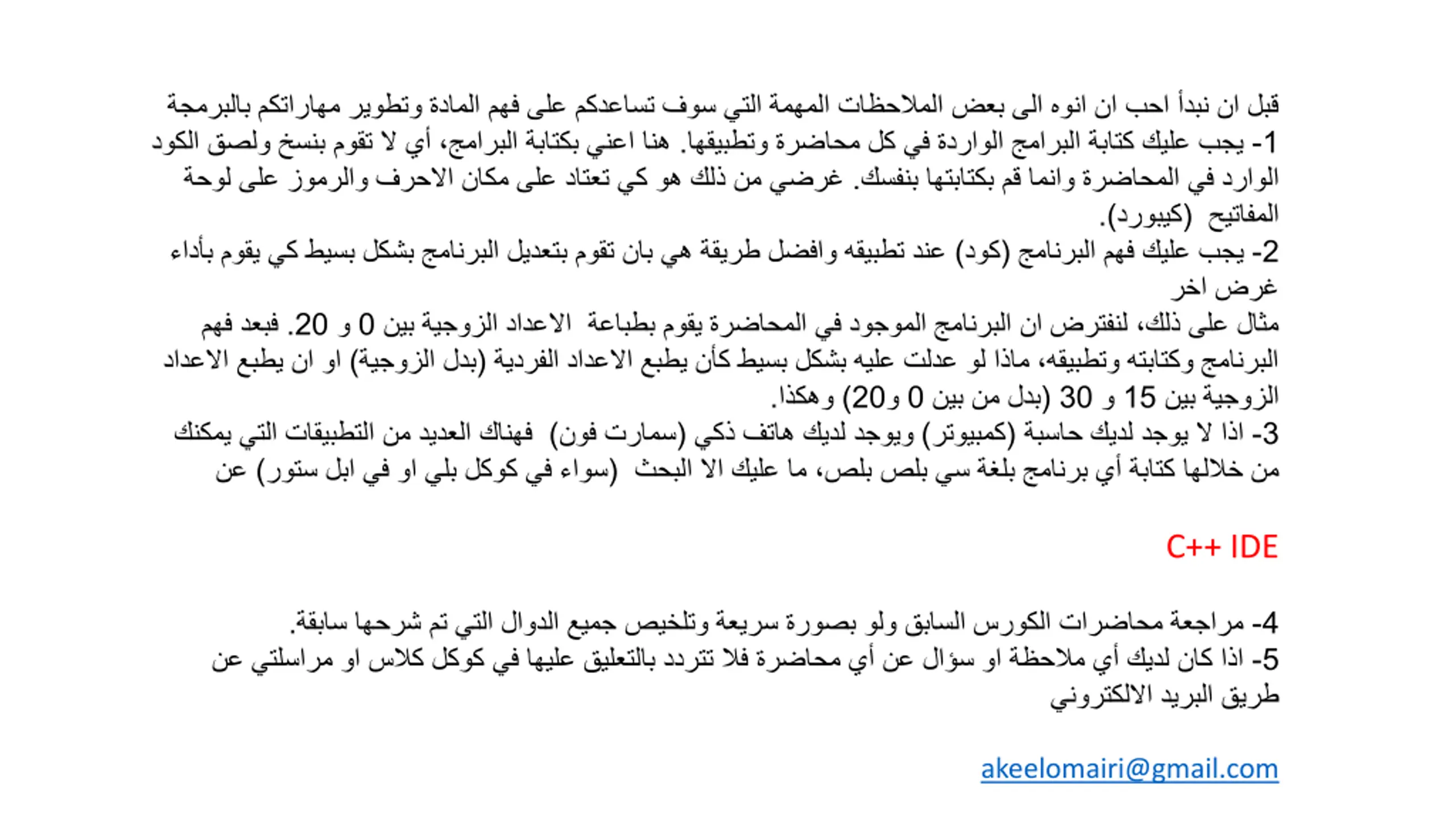 . 1 - . .) ( ) ( 2 - 0 ( ) . ( ) ( ) . 20 ) 20 0 ) ( 30 15 ( 3 - C++ IDE . 4 - 5 - akeelomairi@gmail.com