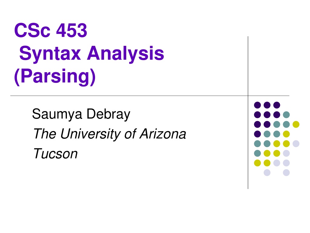 CSc 453 Syntax Analysis (Parsing) Saumya Debray The University of Arizona Tucson