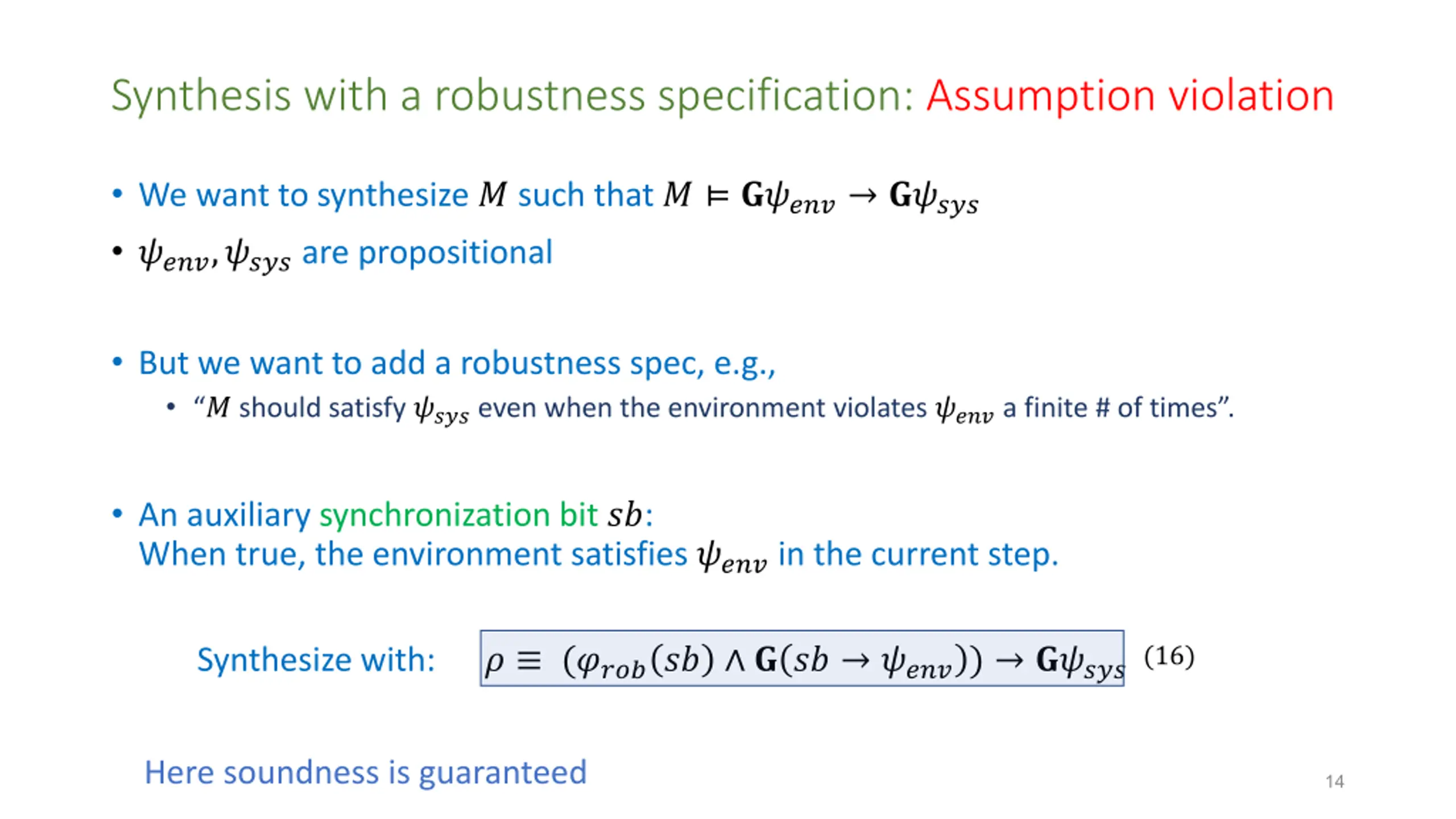 Synthesis with a robustness specification: Assumption violation But we want to add a robustness spec, e.g., ? should satisfy ????even when the environment violates ????a finite # of times . ???? ? ?? ???? ????? Synthesize with: ? (?????? ? ?? ????) ????? (16) 15