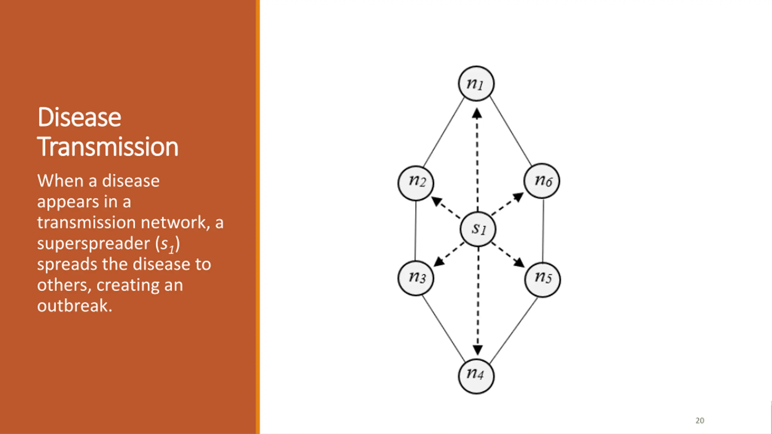 Disease Disease Transmission Transmission When a disease appears in a transmission network, a superspreader (s1) spreads the disease to others, creating an outbreak. 20 PANDEMIC ECONOMICS, CHAPTER 3