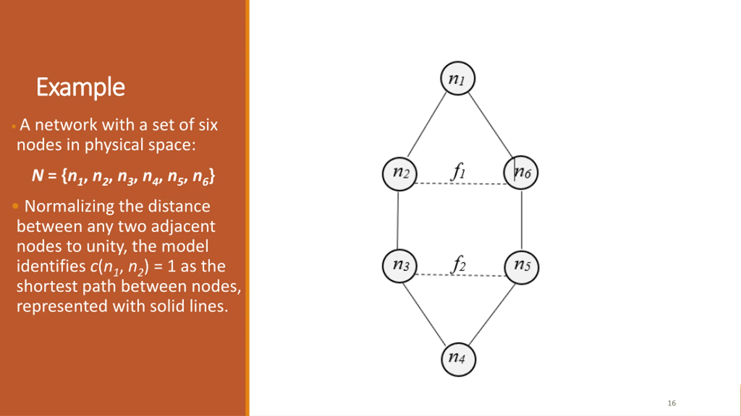 Example Example A network with a set of six nodes in physical space: N = {n1, n2, n3, n4, n5, n6} Normalizing the distance between any two adjacent nodes to unity, the model identifies c(n1, n2) = 1 as the shortest path between nodes, represented with solid lines. 16 PANDEMIC ECONOMICS, CHAPTER 3