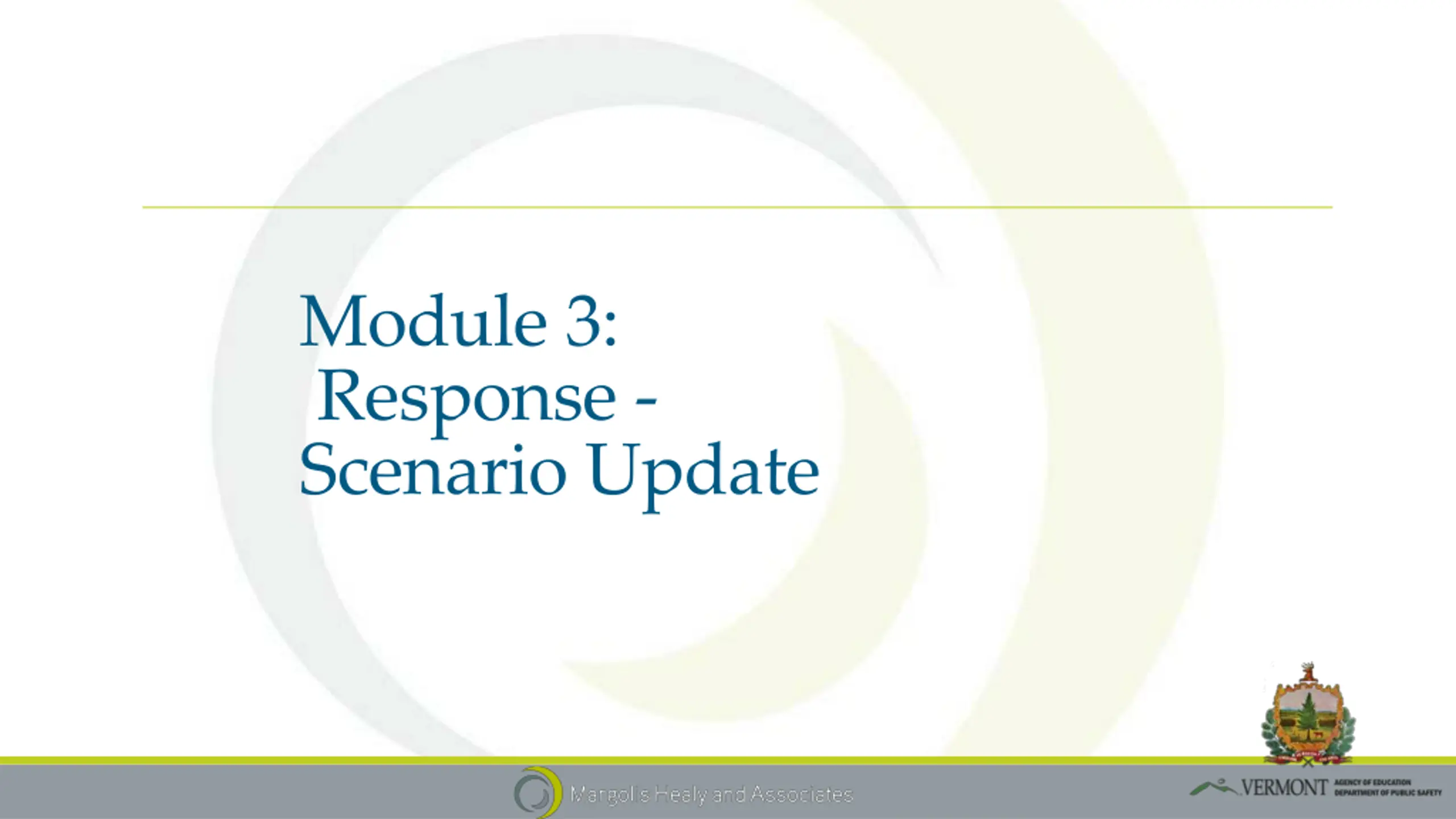 Exercise Structure A scenario-driven, facilitated discussion-based exercise The exercise is divided in four modules: oModule 1: Initial Response Scenario Background oModule 2: Response Scenario Update #1 oModule 3: Response Scenario Update #2 oModule 4: Recovery Scenario Update #3 Debrief