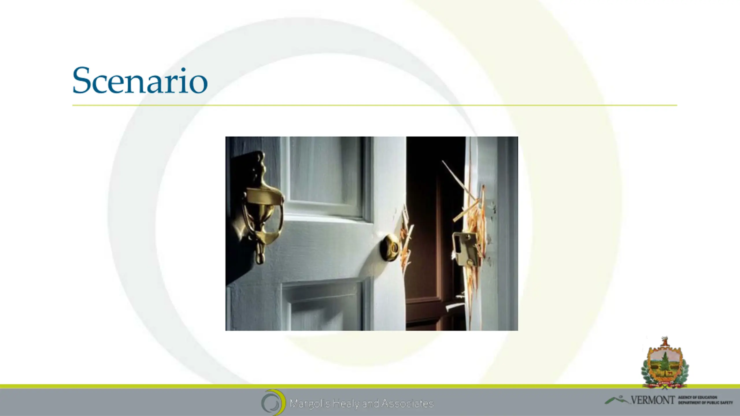 Date: Time: It is 8:45 a.m. and multiple police cruisers are seen surrounding a residential property adjacent to the school soccer field. Shortly after, the school is notified by the local police department that an armed home invasion took place at a residence located near the school.