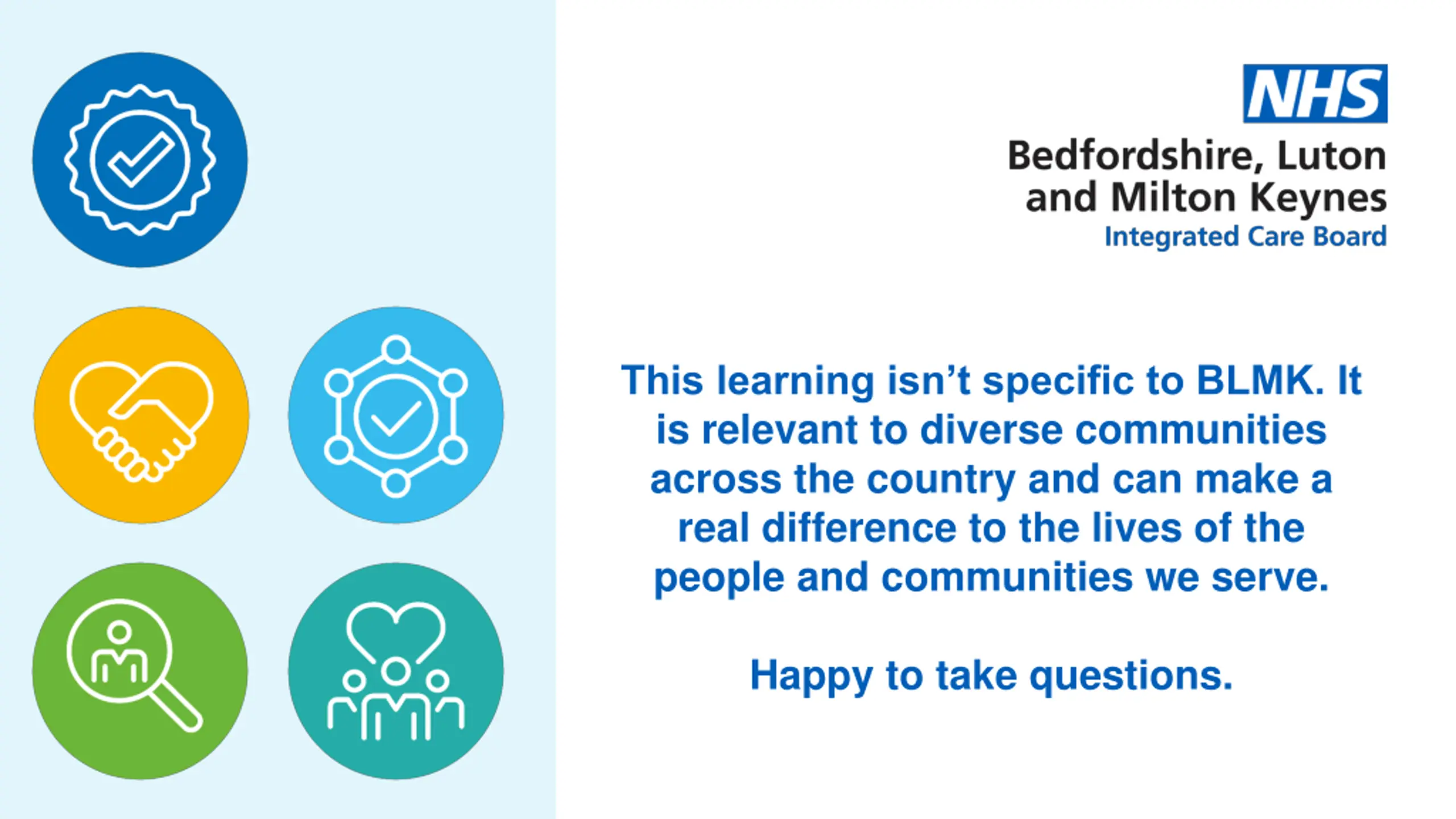 This learning isnt specific to BLMK. It is relevant to diverse communities across the country and can make a real difference to the lives of the people and communities we serve. Happy to take questions.