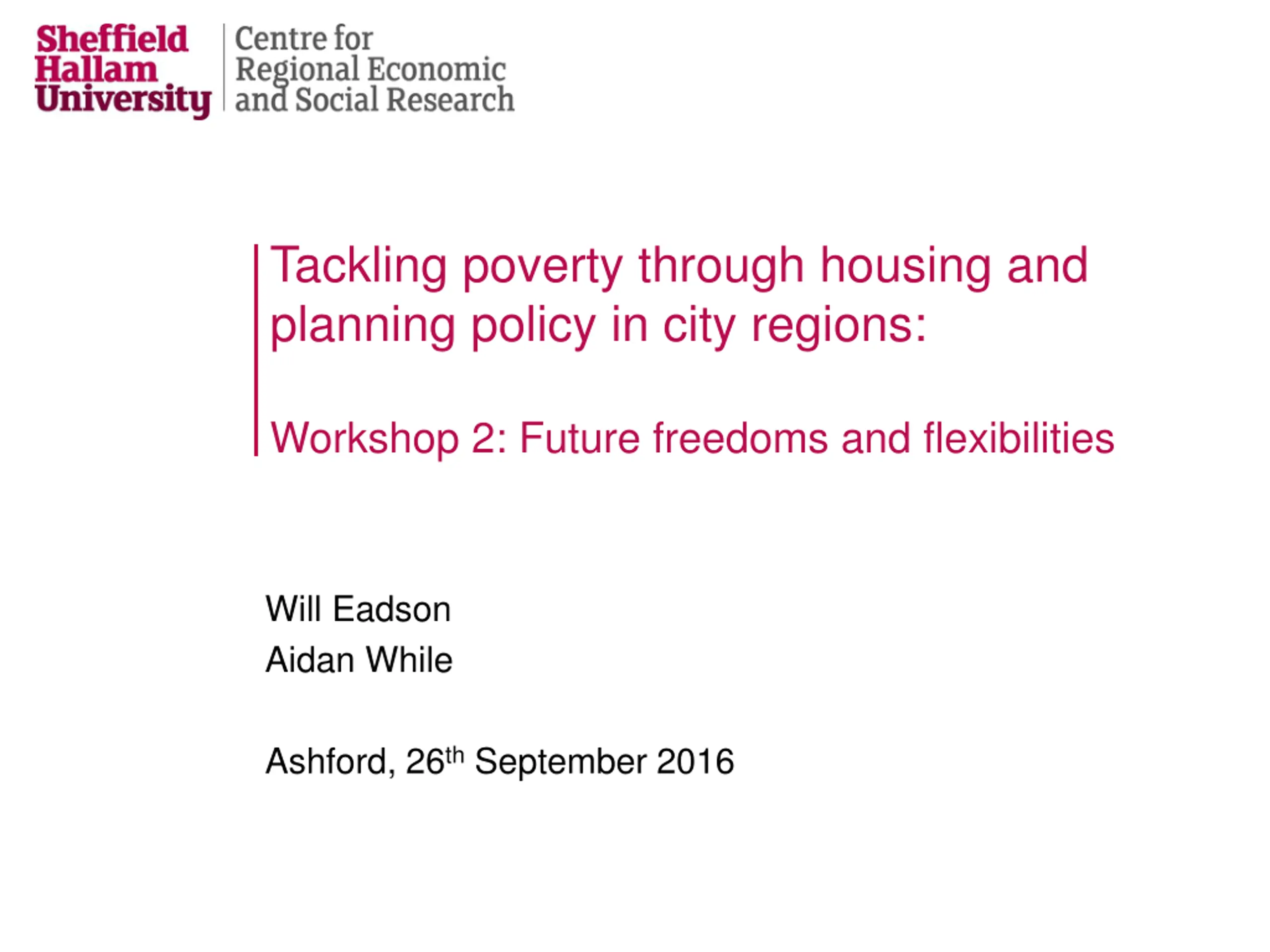 Tackling poverty through housing and planning policy in city regions: Workshop 2: Future freedoms and flexibilities Will Eadson Aidan While Ashford, 26thSeptember 2016