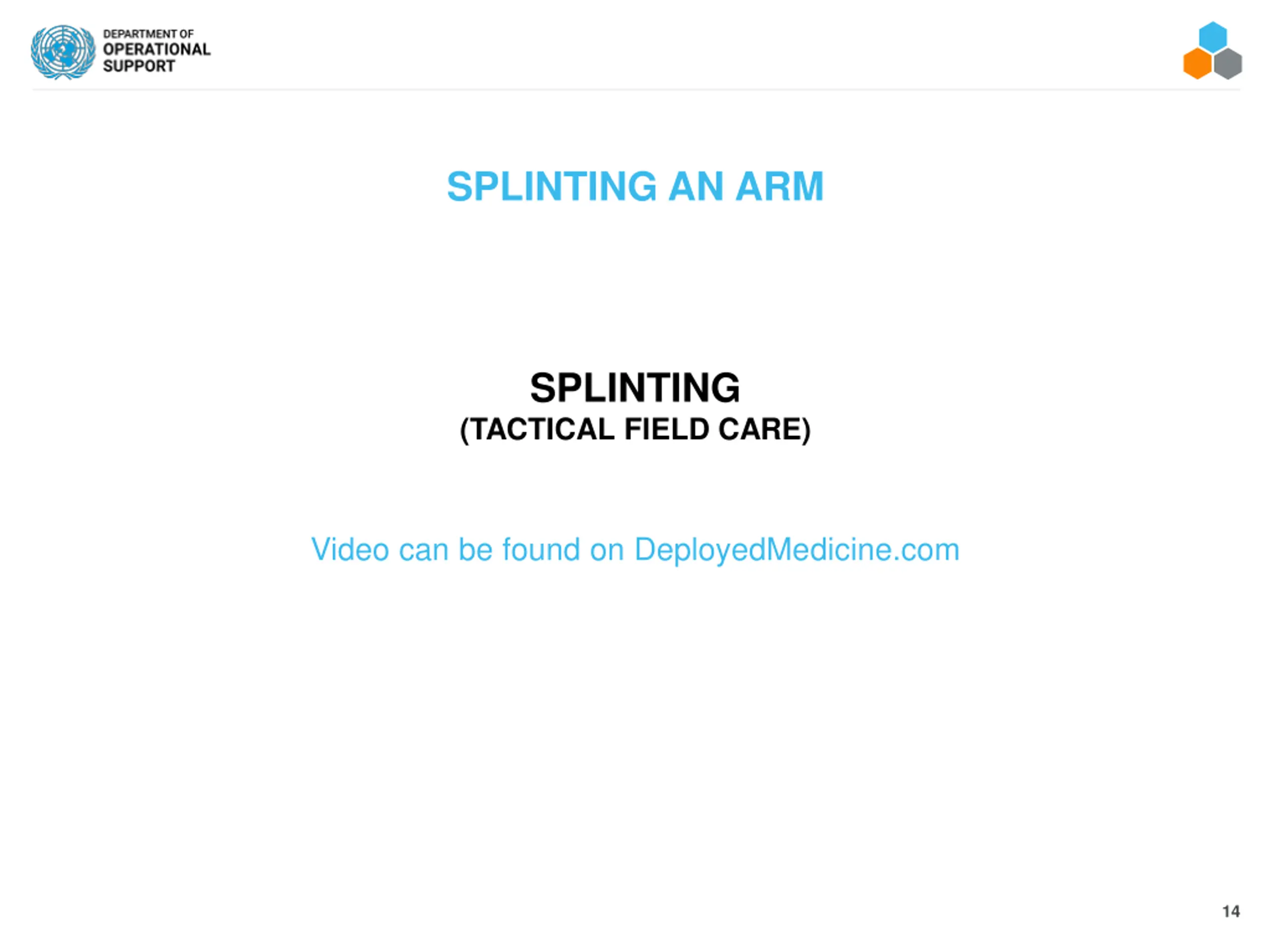SPLINTING AN ARM SPLINTING (TACTICAL FIELD CARE) Video can be found on DeployedMedicine.com 14