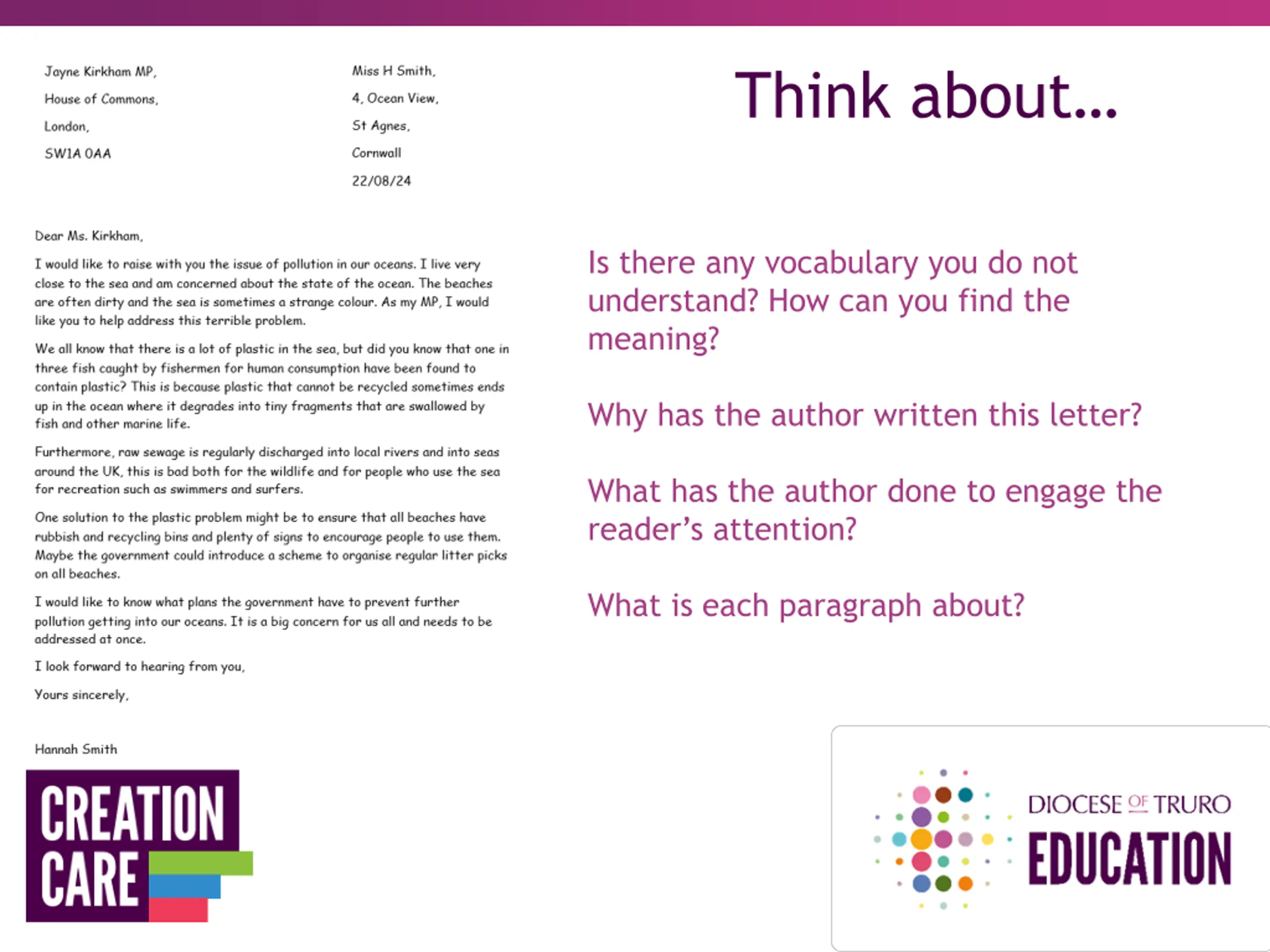 Think about Is there any vocabulary you do not understand? How can you find the meaning? Why has the author written this letter? What has the author done to engage the reader s attention? What is each paragraph about?