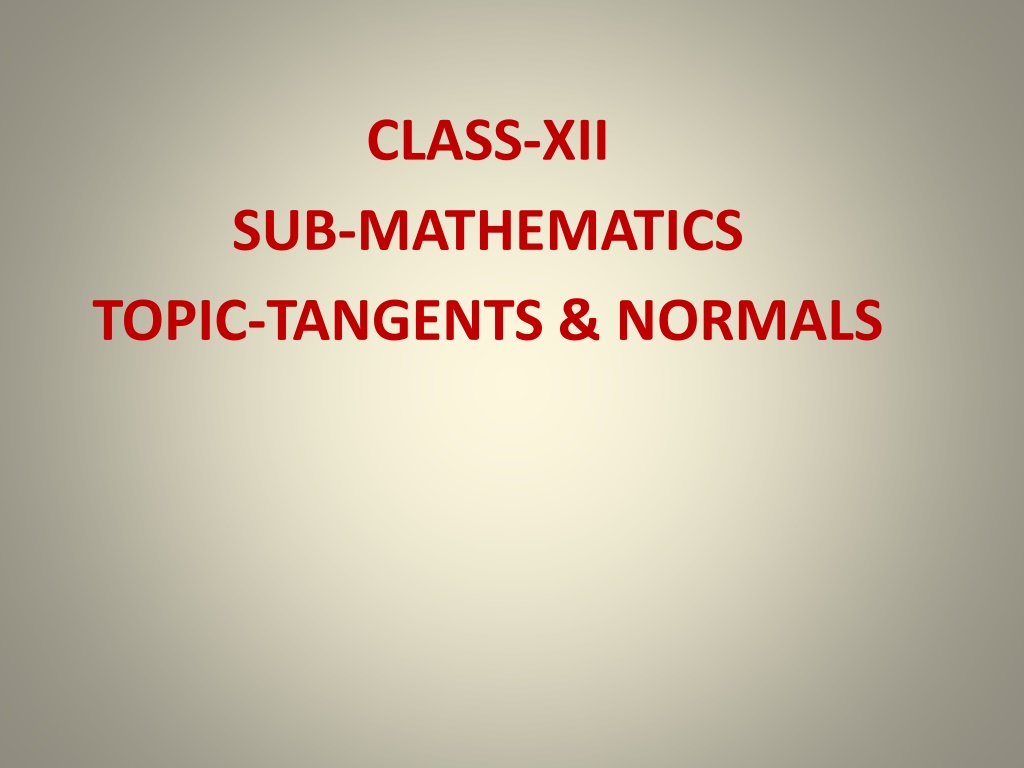CLASS-XII SUB-MATHEMATICS TOPIC-TANGENTS & NORMALS